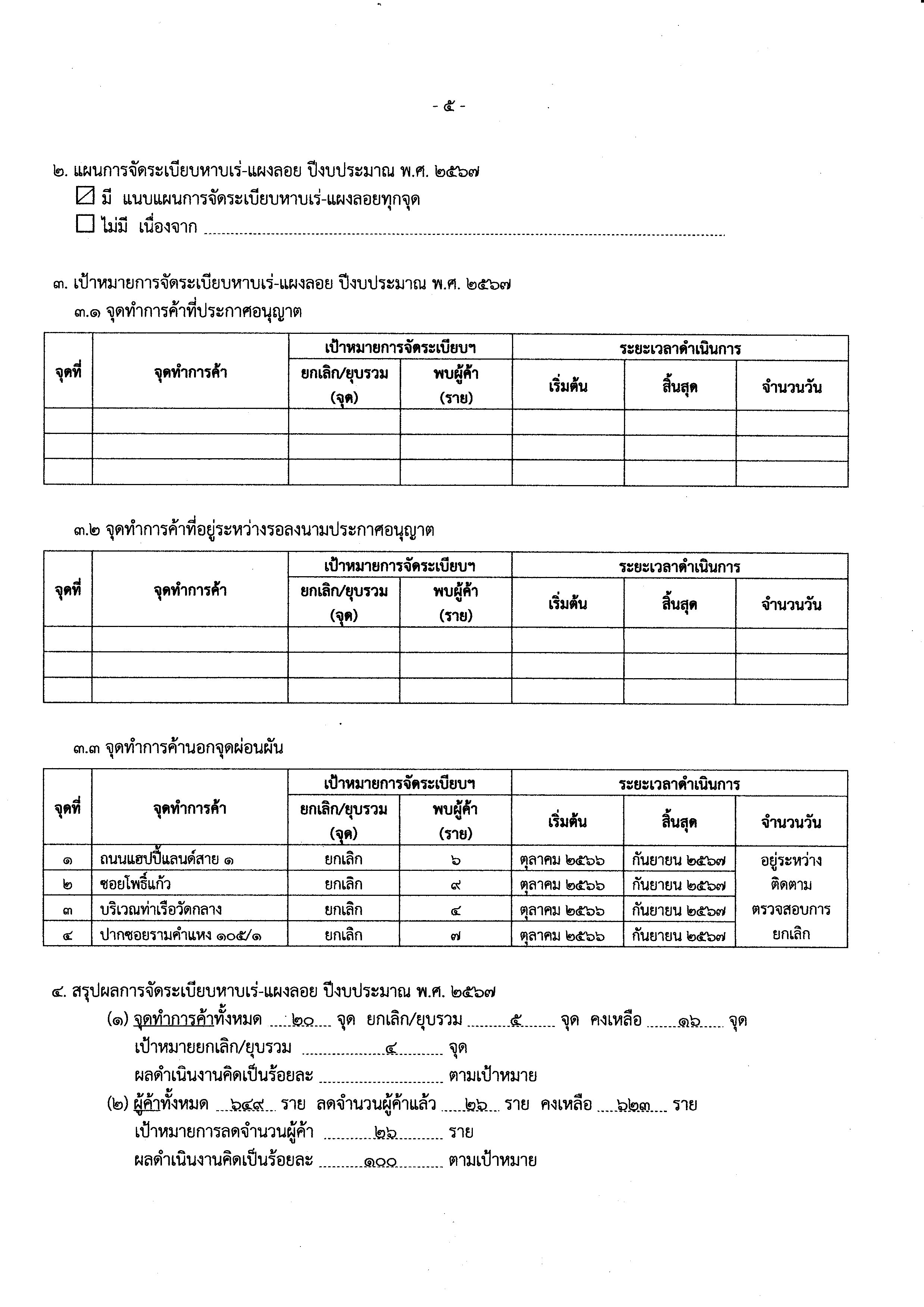 72023-11-30 00:00:00.00000000.000.00ฝ่ายเทศกิจกำหนดแผนเป้าหมายในการยกเลิกพื้นที่ทำการค้านอกจุดจำนวน 4 จุด