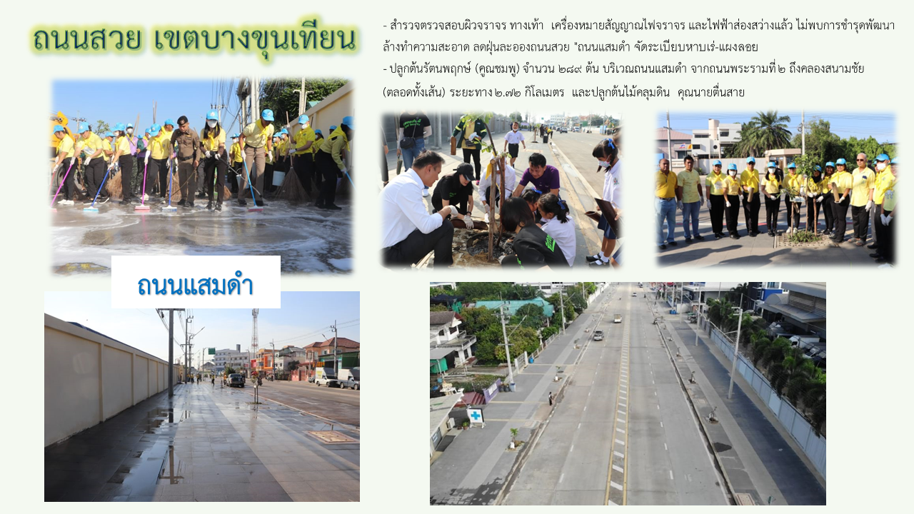 ![]() | - | พัฒนาถนนสวย (กม.) | 0.00 | 100.00 | สำนักงานเขตบางขุนเทียน | ฝ่ายปกครอง |