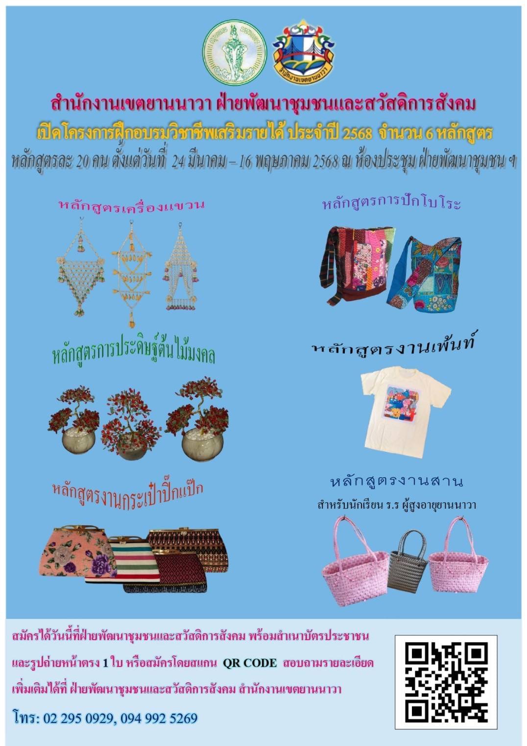 ![]() | 5 | ฝึกอบรมตามหลักสูตรที่กำหนด จำนวน 6 หลักสูตร 5.1 หลักสูตรเครื่องแขวน 5.2 หลักสูตรการปักโบโระ 5.3 หลักสูตรการประดิษฐ์ต้นไม้มงคล 5.4 หลักสูตรงานเพ้นท์ 5.5 หลักสูตรงานกระเป๋าปิ๊กแป๊ก 5.6 หลักสูตรงานสาน | 40.00 | 2025-03-01 00:00:00.0000000 | 2025-06-30 00:00:00.0000000 |