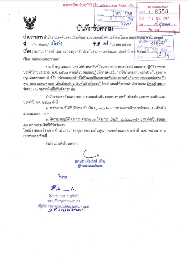 | 20 | ![]() | 2024-09-30 00:00:00.0000000 | 0.00 | 0.00 | จัดทำแผนปฏิบัติการส่งเสริมการใช้งบประมาณกองทุนหลักประกันสุขภาพกรุงเทพมหานคร สำนักงานเขตดินแดง | ||