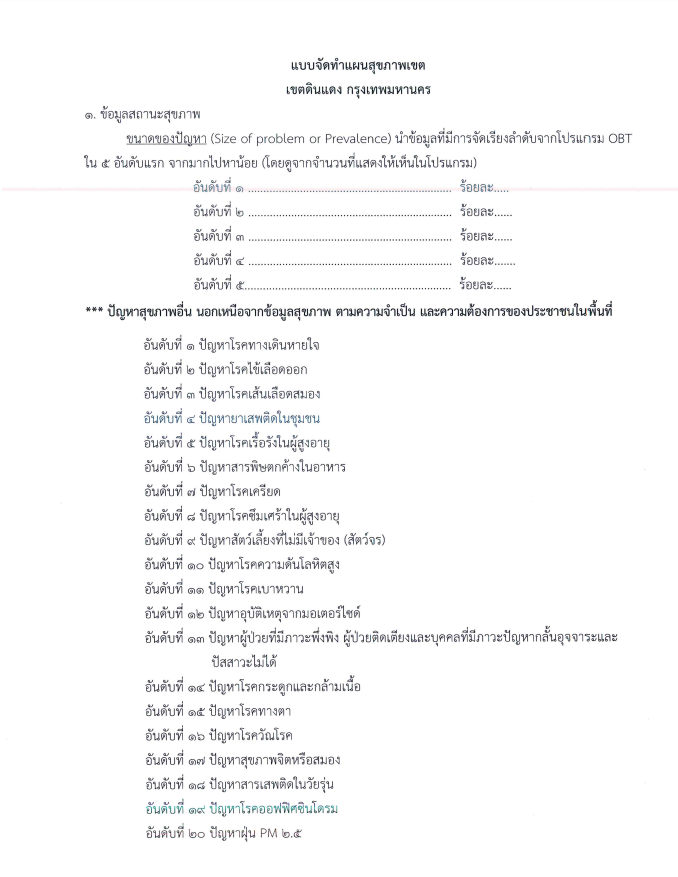 | 20 | ![]() | 2024-09-30 00:00:00.0000000 | 0.00 | 0.00 | สำนักงานเขตดินแดงจัดทำแผนสุขภาพเขตดินแดง เพื่อสำรวจและวิเคราะห์ข้อมูลสุขภาพของประชาชนในพื้นที่เขต | ||