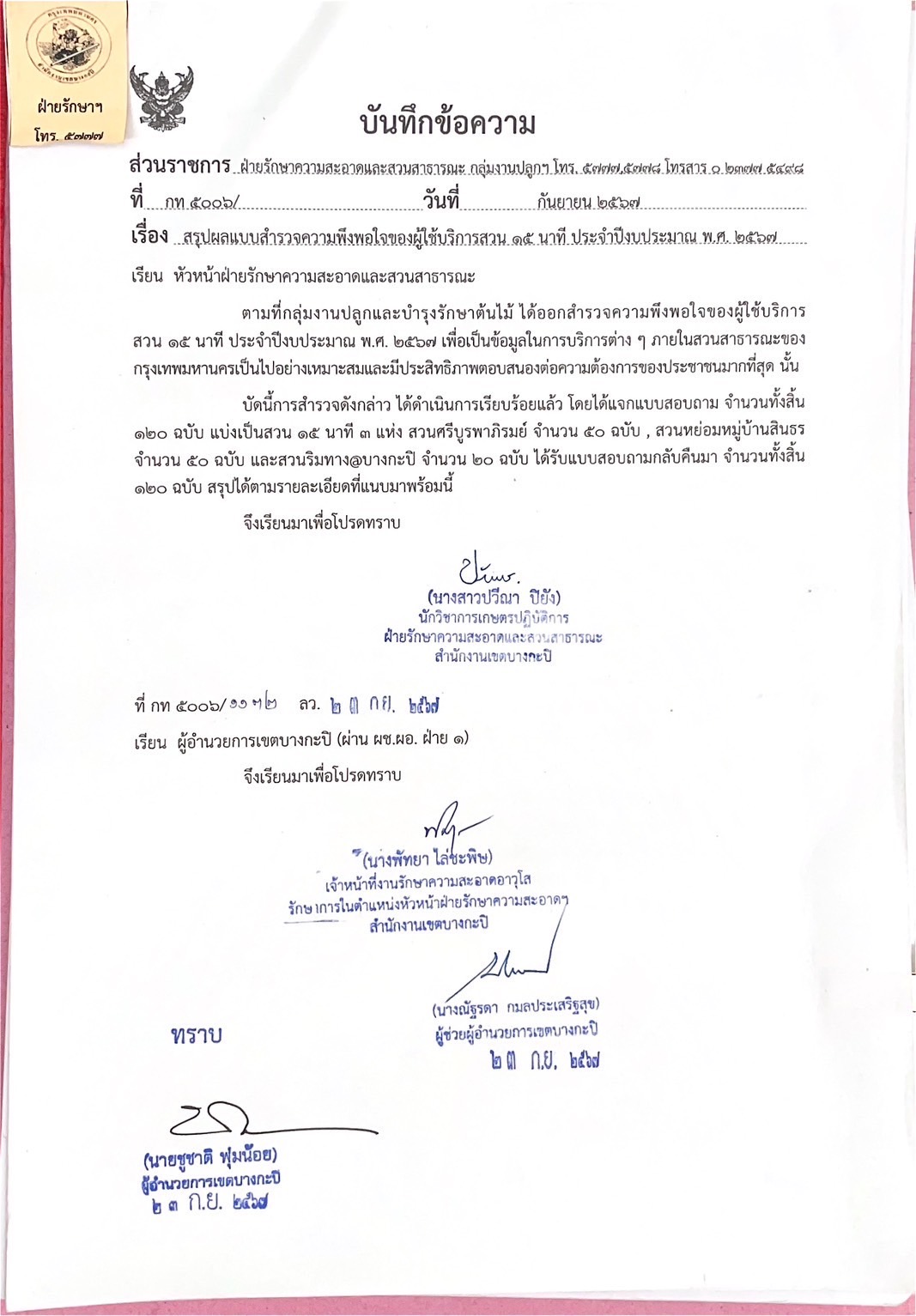 | 3 | ![]() | 2024-09-23 00:00:00.0000000 | 0.00 | 0.00 | สำรวจแบบสอบถามความพึงพอใจที่มีต่อสวน 15 นาที แห่งที่ 1-3 | ||