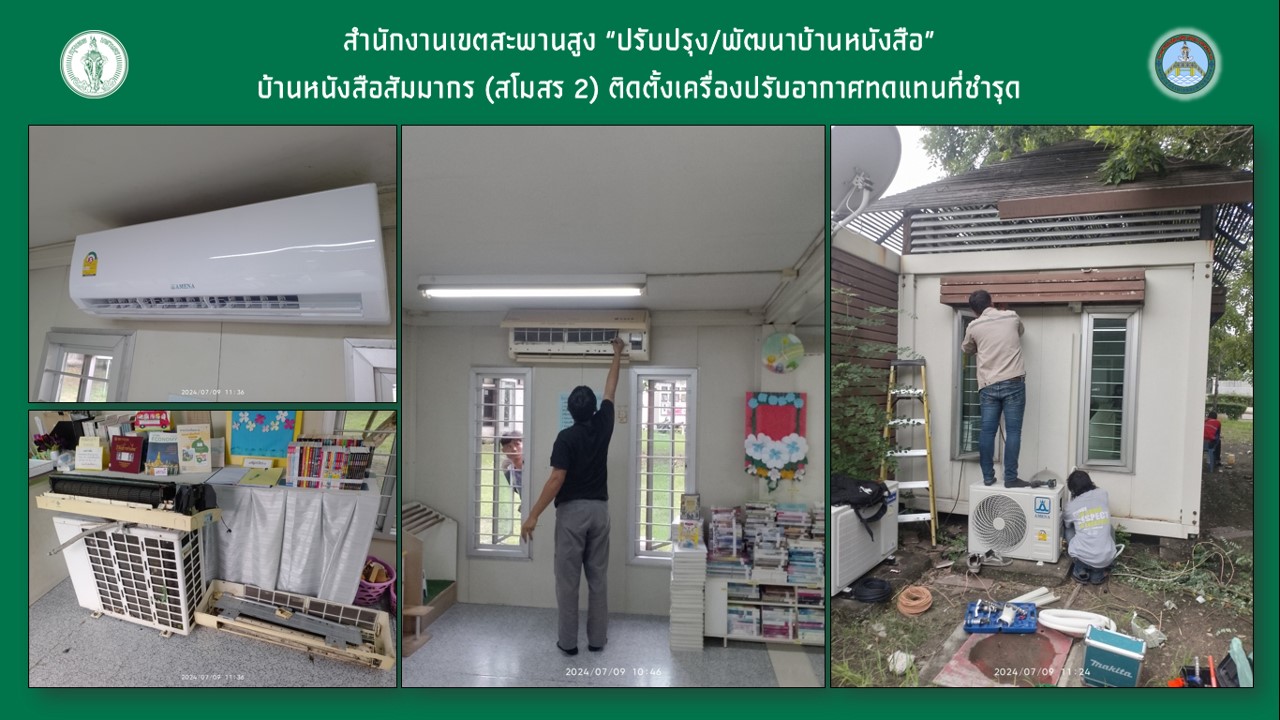 | 14 |  | 2024-09-03 00:00:00.0000000 | 1.00 | 0.00 |  | ติดตั้งแอร์ใหม่ทดแทนที่จำหน่ายของบ้านหนังสือ หลังละ 2 ตัว รวมเป็น 8 ตัว | |