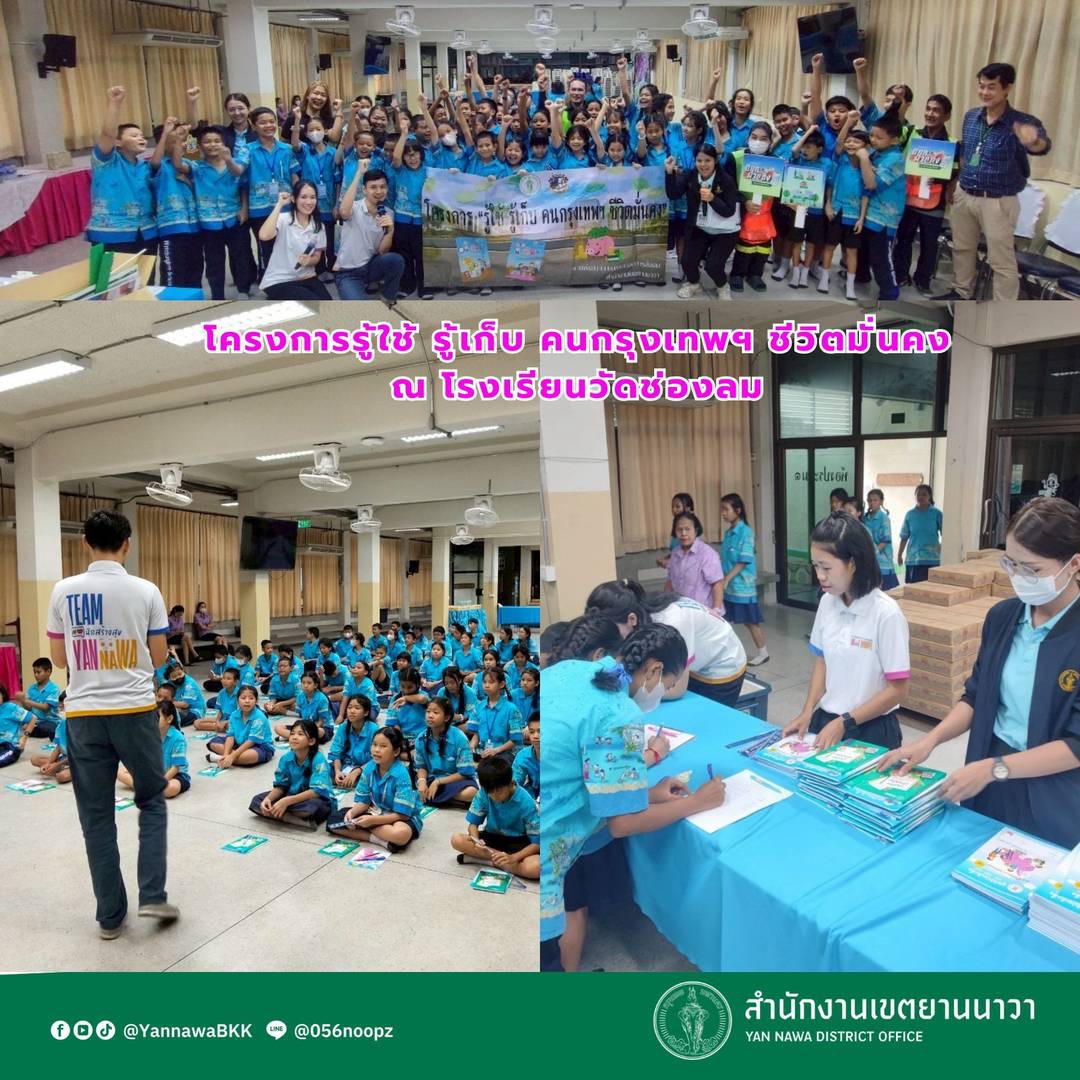 | 99 | ![]() | 2025-06-26 00:00:00.0000000 | 0.00 | 0.00 | วันที่ 18 มิถุนายน 2568 ฝ่ายพัฒนาชุมชนฯ นำทีมวิทยากรเจ้าหน้าที่จากฝ่ายต่างๆของสำนักงานเขตยานนาวา จัดกิจกรรมให้ความรู้กับน้องๆโรงเรียนวัดปริวาส โดยฝ่ายพัฒนาชุมชนและสวัสดิการสังคม จัดกิจกรรมโครงการรู้ใช้รู้เก็บ คนกรุงเทพฯ ชีวิตมั่นคง ออกหน่วยรณรงค์เคลื่อนที่ส่งเสริมการบริหารเงินออม ให้ความรู้ด้านการบริหารเงินออม การทำบัญชีรายรับ รายจ่ายให้กับน้องๆ ฝ่ายรักษาความสะอาดและสวนสาธารณะจัดกิจกรรมส่งเสริมการคัดแยกขยะ การทิ้งขยะไม่เทรวม โครงการแยกที่บ้านฝากทิ้งที่เรา | ||