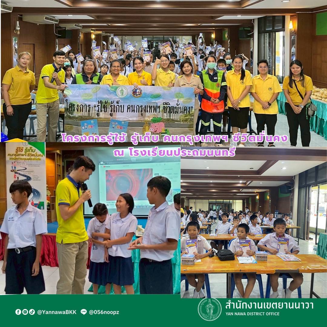 | 99 | ![]() | 2025-06-26 00:00:00.0000000 | 0.00 | 0.00 | วันที่ 20 มิถุนายน 2568 ฝ่ายพัฒนาชุมชนฯ นำทีมวิทยากรเจ้าหน้าที่จากฝ่ายต่างๆของสำนักงานเขตยานนาวา จัดกิจกรรมให้ความรู้กับน้องๆโรงเรียนวัดดอกไม้ โดยฝ่ายพัฒนาชุมชนและสวัสดิการสังคม จัดกิจกรรมโครงการรู้ใช้รู้เก็บ คนกรุงเทพฯ ชีวิตมั่นคง ออกหน่วยรณรงค์เคลื่อนที่ส่งเสริมการบริหารเงินออม ให้ความรู้ด้านการบริหารเงินออม การทำบัญชีรายรับ รายจ่ายให้กับน้องๆ ฝ่ายรักษาความสะอาดและสวนสาธารณะจัดกิจกรรมส่งเสริมการคัดแยกขยะ การทิ้งขยะไม่เทรวม โครงการแยกที่บ้านฝากทิ้งที่เรา | ||
