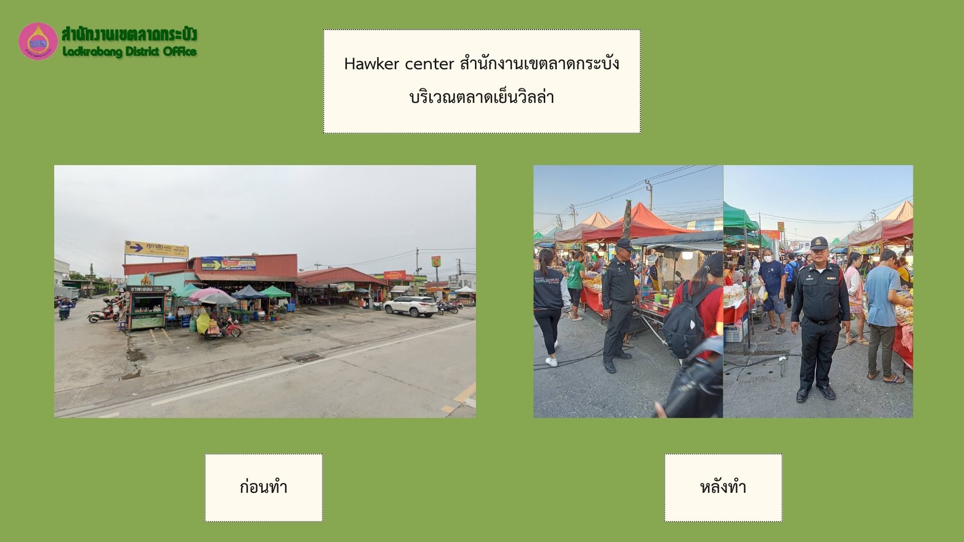82024-02-19 00:00:00.00000000.000.00สำนักงานเขตลาดกระบัง โดยฝ่ายเทศกิจได้ดำเนินการจัดหาพื้นที่เอกชนหรือพื้นที่พัฒนา Hawker center รองรับผู้ค้าหาบเร่ที่บริเวณตลาดเย็นวิลล่า