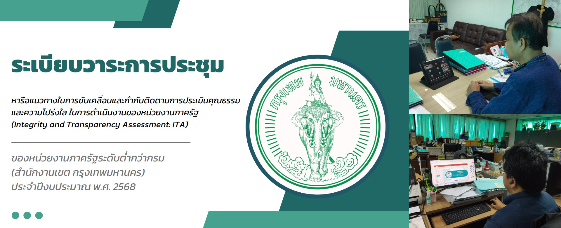 รายละเอียดโครงการ : การประเมินคุณธรรมและความโปร่งใสในการดำเนินงานของหน่วยงานภาครัฐ (Integrity and Transparency Assessment: ITA) สำนักงานเขต กรุงเทพมหานคร ประจำปีงบประมาณ พ.ศ. 2568 (ID: 12580)