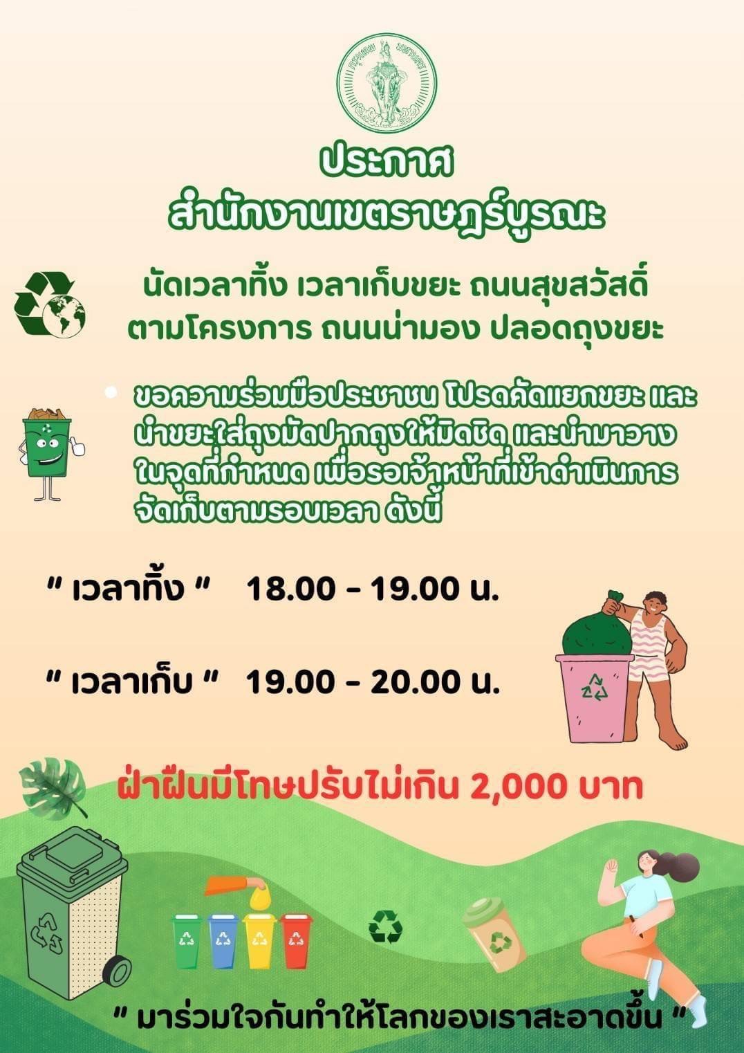 | 5211 | ![]() | 2024-10-29 00:00:00.0000000 | 1.00 | 0.00 | 1. ประชาสัมพันธ์ขอความร่วมมือประชาชน คัดแยกขยะและนำขยะมาทิ้งในจุดที่กำหนด บริเวณริมถนนสุขสวัสดิ์ 2. ดำเนินการเก็บขยะ บริเวณถนนสุขสวัสดิ์เป็นประจำ ตามแผนนัดเวลาทิ้งนัดเวลาเก็บบริเวณริมถนนสุขสวัสดิ์ ระยะทาง 4.72 กิโลเมตร จากซอยสุขสวัสดิ์ 1 ถึง ซอยสุขสวัสดิ์ 37 |