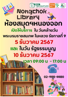 | 5375 | ![]() | 2025-01-16 00:00:00.0000000 | 32.00 | 0.00 | ห้องสมุดฯ พัฒนาคุณภาพห้องสมุดฯ ดังนี้ 1. เปิดให้บริการวันหยุดนักขัตฤกษ์ จำนวน 26 ห้องสมุดฯ 1.1 หอสมุดเมืองกรุงเทพมหานคร 1.2 ห้องสมุดฯ สวนลุมพินี 1.3 ห้งอสมุดฯ ซอยพระนาง 1.4 ห้องสมุดฯ ภาษีเจริญ 1.5 ห้องสมุดฯ ลาดกระบัง 1.6 ห้องสมุดฯ บางกะปิ 1.7 ห้องสมุดฯ สะพานสูง 1.8 ห้องสมุดฯ ทุ่งครุ 1.9 ห้องสมุดฯ ดุสิต 1.10 ห้องสมุดฯ บางขุนเทียน 1.11 ห้องสมุดฯ มีนบุรี 1.12 ห้องสมุดฯ ห้วยขวาง 1.13 ห้องสมุดฯ วัดราชโอรสารามฯ 1.14 ห้องสมุดฯ บางเขน 1.15 ห้องสมุดฯ ประเวศ 1.16 ห้องสมุดฯ วัดลาดปลาเค้า 1.17 ห้องสมุดฯ หนองจอก 1.18 ห้องสมุดฯ คลองสามวา 1.19 ห้องสมุดฯ บ้านจิรายุ - พูนทรัพย์ 1.20 ห้องสมุดฯ อิสลามฯ 1.21 ห้องสมุดฯ เขตราษฎร์บูรณะ 1.22 ห้องสมุดฯ อนงคาราม 1.23 ห้องสมุดฯ วัดรัชฎาธิษฐานฯ 1.24 ห้องสมุดสีเขียว 1.25 ห้องสมุดฯ เคหะชุมชนดินแดง 2 1.26 ห้องสมุดฯ เสรีไทยอนุสรณ์ 2. พัฒนาคุณภาพห้องสมุดฯ ด้านอื่นๆ จำนวน 6 ห้องสมุดฯ 2.1 ห้องสมุดฯ รมณีย์ทุ่งสีกัน พัฒนาคุณภาพห้องสมุดฯ ด้านการให้บริการ เรื่อง นิทานลานหญ้า - แนะนำหนังสือนิทานผ่านการเล่านิทานและสื่อโซเชียลมีเดีย เว็บไซต์ของห้องสมุดฯ 2.2 ห้องสมุดสิ่งแวดล้อม พัฒนาคุณภาพห้องสมุดฯ ด้านการให้บริการ เรื่อง อ่าน- ตอบ-แชร์ - แนะนำหนังสือเกี่ยวสิ่งแวดล้อมผ่านสื่อโซเชียลมีเดีย เว็บไซต์ของห้องสมุดฯ 2.3 ห้องสมุดฯ วัดพรหมรังษี พัฒนาคุณภาพห้องสมุดฯ ด้านการให้บริการ เรื่อง ประชาสัมพันธ์ผ่านสื่อโซเชียลมีเดีย - จัดทำสื่อประชาสัมพันธ์พื้นที่รอบๆ ห้องสมุด ทรัพยากรสารสนเทศภายในห้องสมุดผ่านสื่อโซเชียลมีเดีย 2.4 ห้องสมุดฯ วนธรรม พัฒนาคุณภาพห้องสมุดฯ ด้านการให้บริการ เรื่อง ประชาสัมพันธ์ผ่านสื่อโซเชียลมีเดีย - จัดทำสื่อประชาสัมพันธ์พื้นที่รอบๆ ห้องสมุด ทรัพยากรสารสนเทศภายในห้องสมุดผ่านสื่อโซเชียลมีเดีย 2.5 ห้องสมุดฯ เขตบางซื่อ พัฒนาคุณภาพห้องสมุดฯ ด้านการให้บริการ เรื่อง สอนกีต้าร์โปร่งเบื้องต้น - เปิดสอนกีต้าร์โปร่ง ที่สนใจการเล่นกีต้าร์ผ่านออนไซต์ และนำเสนอผ่านสื่อออนไลน์ 2.6 ห้องสมุดวิชาการ พัฒนาคุณภาพห้องสมุดฯ ด้านการให้บริการ เรื่อง แบ่งปันหนังสือเพื่อทุกคน Book Sharing For All - ให้บริการทรัพยากรสารสนเทศแบบได้เปล่าให้กับประชาชนที่สนใจ อยู่ระหว่างดำเนินการให้บริการ และเก็บรวบรวมข้อมูลประจำเดือน รวมจำนวนห้องสมุดฯ ที่พัฒนาคุณภาพห้องสมุดฯ จำนวน 32 แห่ง **หมายเหตุ ห้องสมุดฯ วัดศิริพงษ์ธรรมนิมิต ปิดปรับปรุง และห้องสมุดฯ บางนอน เตรียมปิดปรับปรุง สถิติผู้เข้าใช้บริการวันหยุด วันนักขัตฤกษ์ เดือน พฤศจิกายน 2567 ไม่มีวันหยุดนักขัตฤกษ์ เดือน ธันวาคม 2567 จำนวนผู้เข้า