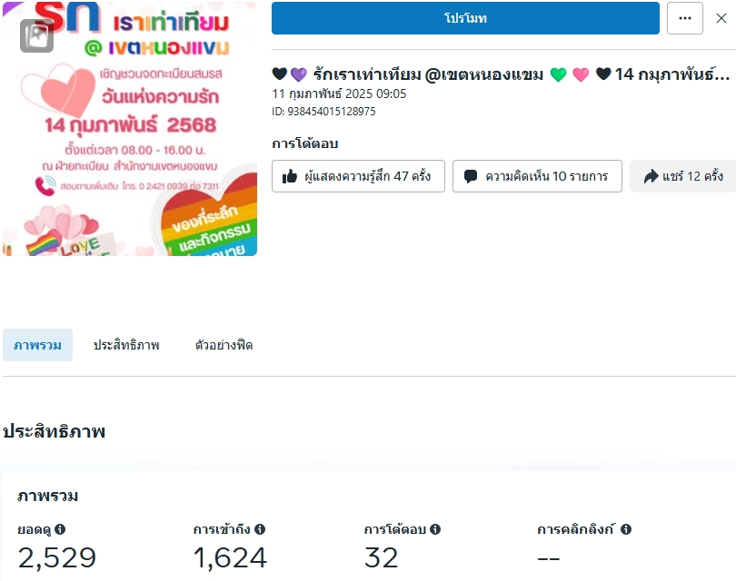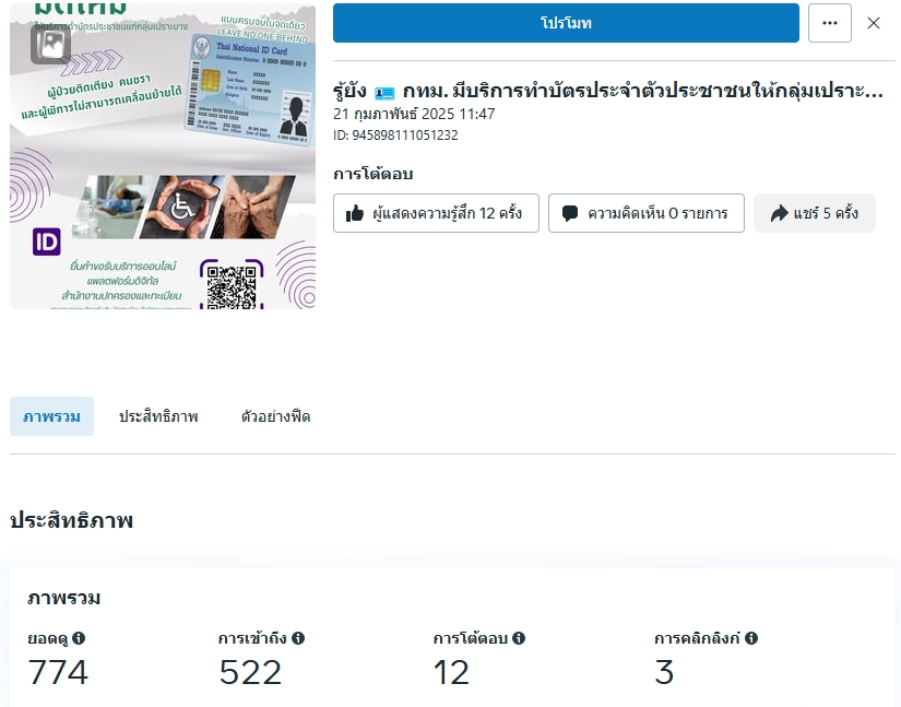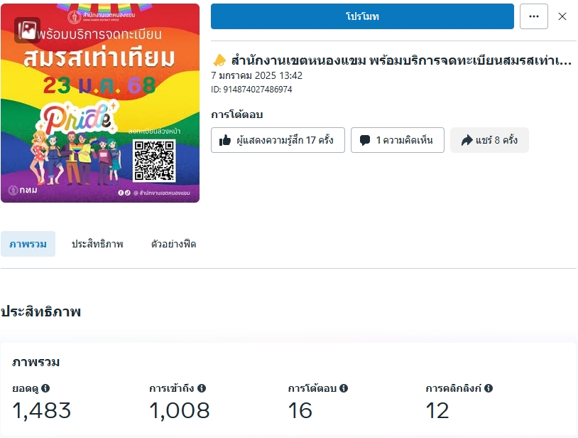 รายละเอียดโครงการ : กิจกรรมการเผยแพร่ข้อมูลข่าวสารของสำนักงานเขตหนองแขมผ่านสื่อ Social Media (ID: 12879)