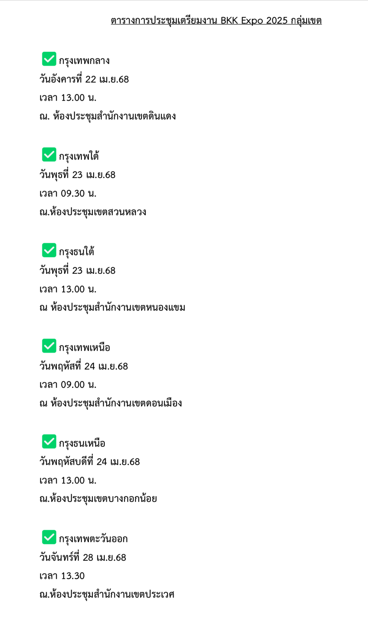 ![]() | 2 | ประสานสำนักงานเขต ร่วมกับคณะขับเคลื่อนการมีส่วนร่วมเพื่อการพัฒนาเขต กำหนดจัดประชุมคณะทำงานพัฒนาเขตเชิงพื้นที่เพื่อพิจารณาปัญหา และแนวการแก้ไขปัญหา ตามภารกิจแต่ละด้าน | 15.00 | 2024-10-01 00:00:00.0000000 | 2024-11-30 00:00:00.0000000 |