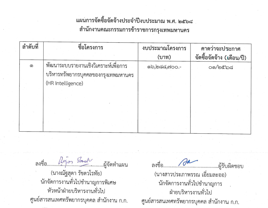 | 5454 |  | 2025-07-22 00:00:00.0000000 | 0.00 | 0.00 |  | ***โครงการ HR Intelligence อยู่ในระหว่างกำหนดร่างขอบเขตของงาน
