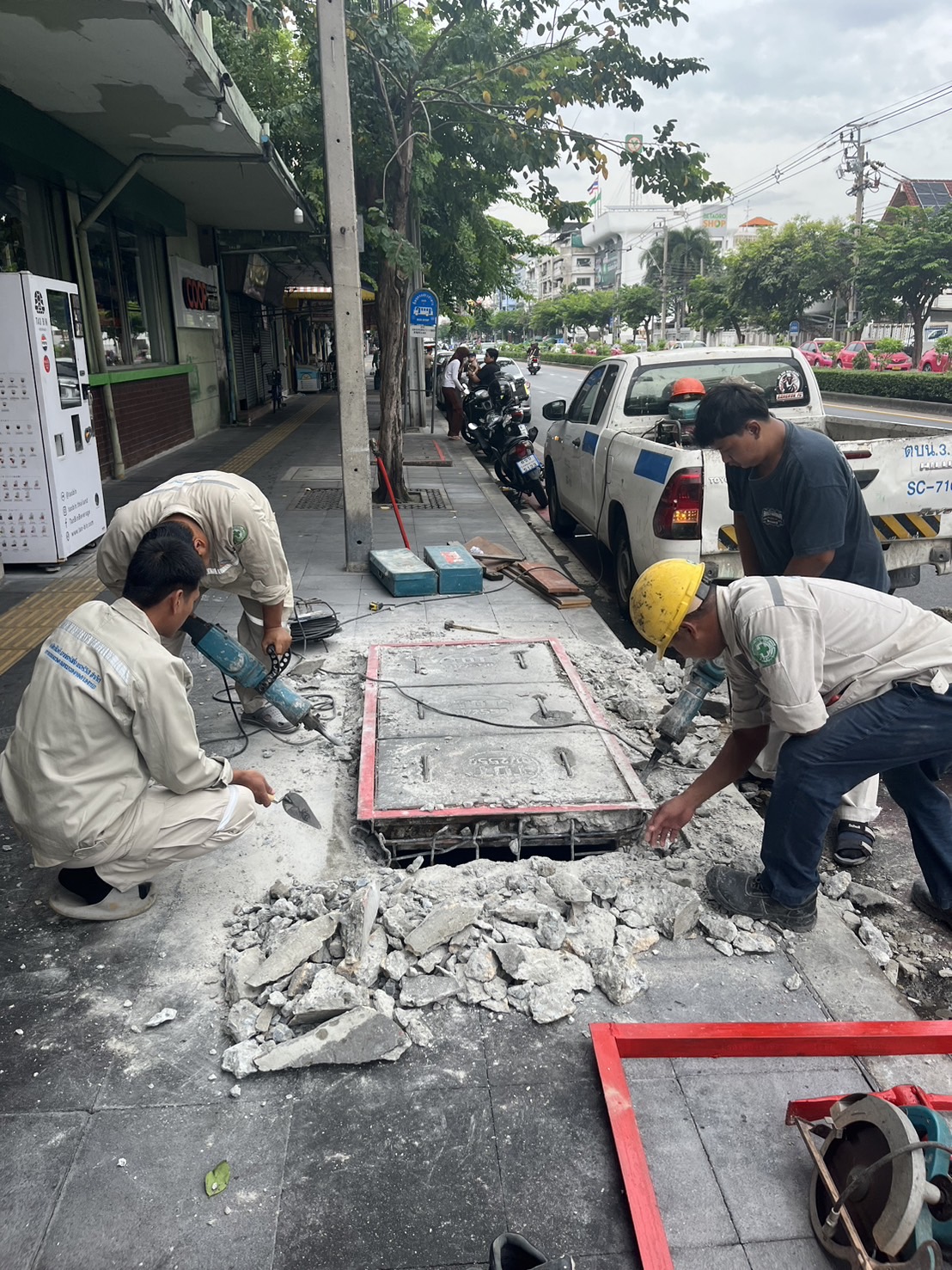 - สำนักงานเขตเจ้าหน้าที่ฝ่ายเทศกิจกวดขัน หาบเร่แผงลอย ฝ่ายโยธาอยู่ระหว่างดำเนินการกำจัดสิ่งกีดขวางทางเท้า ฐานตู้ 14 จุด ฝาบ่อพักสูงกว่าทางเท้า 3 จุด คิดเป็นระยาทาง 0.2 กม. เเละปรับปรุงทางเท้าที่ยังไม่เรียบร้อย คิดเป็นระยะทาง 0.20 ก.ม. (ช่วงซุ้มประตูไทยซิกกระเบื้องชำรุด และคอกต้นไม้ไม่เรียบร้อย) | |
