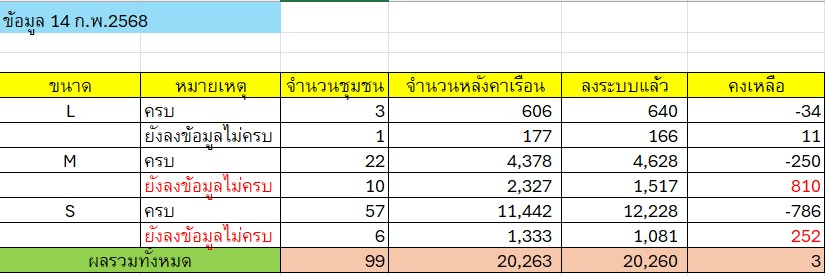 | 5420 | ![]() | 2025-02-25 00:00:00.0000000 | 0.23 | 0.00 | จำนวนหลังคาเรือนชุมชน ขนาด M = 9812 หลังคาเรือน จำนวนหลังคาเรือนชุมชน ขนาด S = 8232 หลังคาเรือน รวม 18,044 หลังคาเรือน นำข้อมูลลงระบบแล้ว M 9,730 หลังคาเรือน S 7,970 หลังคาเรือน รวม 17700 หลังคาเรือน | ||