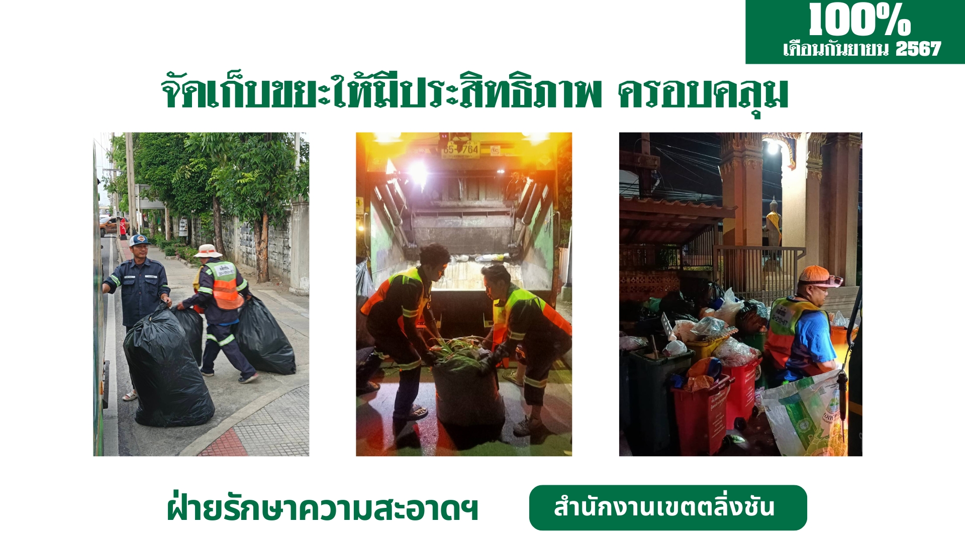 ![]() | - | จัดเก็บขยะให้มีประสิทธิภาพ ครอบคลุม (% ของอาคารและหลังคาเรือนในเขตที่สามารถจัดเก็บขยะได้มากกว่า 2 ครั้งต่อสัปดาห์) | 0.00 | 100.00 | สำนักงานเขตตลิ่งชัน | ฝ่ายปกครอง |