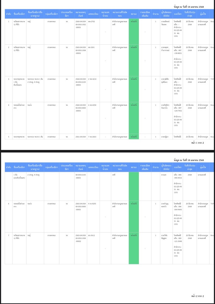 | 5100 | ![]() | 2025-06-20 00:00:00.0000000 | 0.00 | 0.00 | สกค. ได้ดำเนินการตรวจสอบสถานการณ์ใช้งานยานพาหนะของหน่วยงาน ประจำเดือน มิถุนายน 2568 ปรากฎผล ดังนี้ - ยานพาหนะทั้งสิ้น จำนวน 7 คัน - สถานะพร้อมใช้งาน จำนวน 6 คัน - สถานะรอจำหน่าย จำนวน 1 คัน | ||