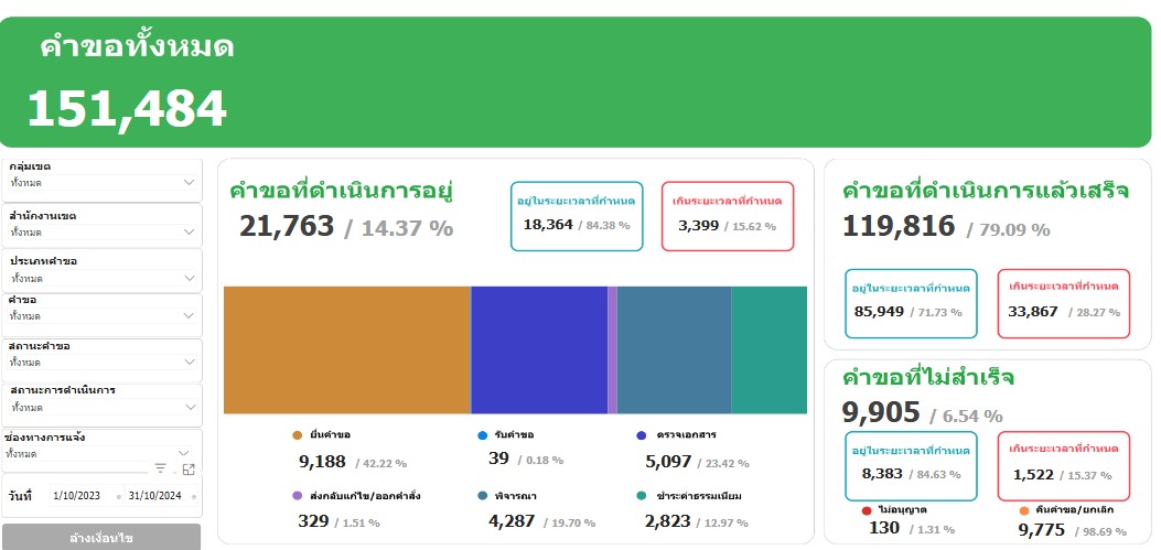 | 5137 | ![]() | 2024-10-31 00:00:00.0000000 | 0.00 | 0.00 | ข้อมูลจากระบบ BMA OSS เดือน ต.ค. 67 แล้วเสร็จ 119,816 เรื่อง ทันกำหนด 85,949 เรื่อง คิดเป็น ร้อยละ 71.73 | ||