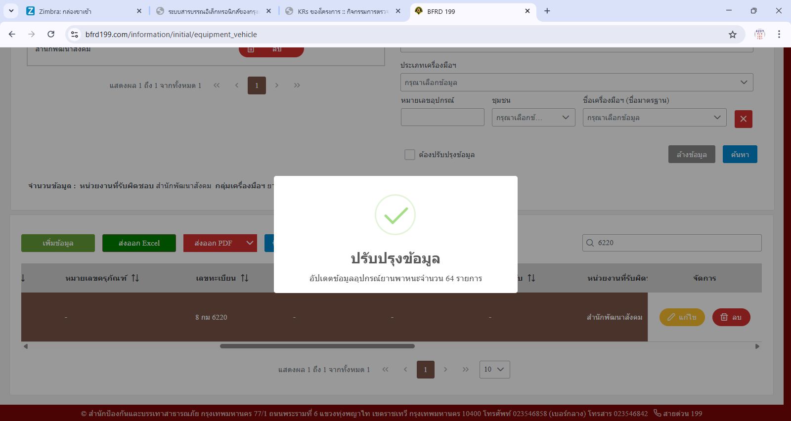 ![]() | - | กิจกรรมการตรวจสอบสภาพยานพาหนะและสถานะการใช้งานของสำนักงานพัฒนาสังคม | 0.00 | 100.00 | สำนักพัฒนาสังคม | ฝ่ายบริหารงานทั่วไป |