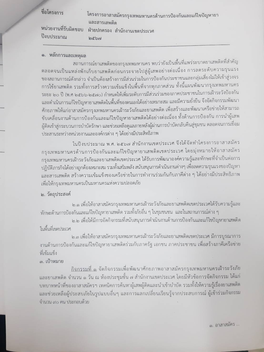 ข้อมูลโครงการ :: โครงการอาสาสมัครกรุงเทพมหานครด้านการป้องกันและแก้ไขปัญหายาและสารเสพติด