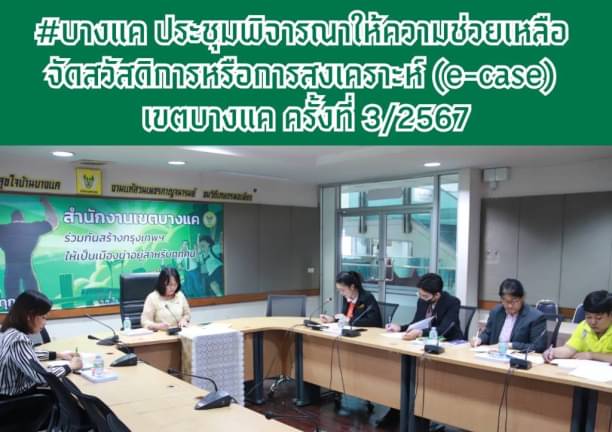 992024-07-26 00:00:00.000000010.000.00ประชุมคณะกรรมการพิจารณาอนุมัติให้ความช่วยเหลือหรือดำเนินการที่เกี่ยวข้องกับระบบการจัดสวัสดิการหรือการสงเคราะห์ (e-case) เขตบางแค ครั้งที่ 3/2567 เมื่อวันที่ 4 ก.ค. 67