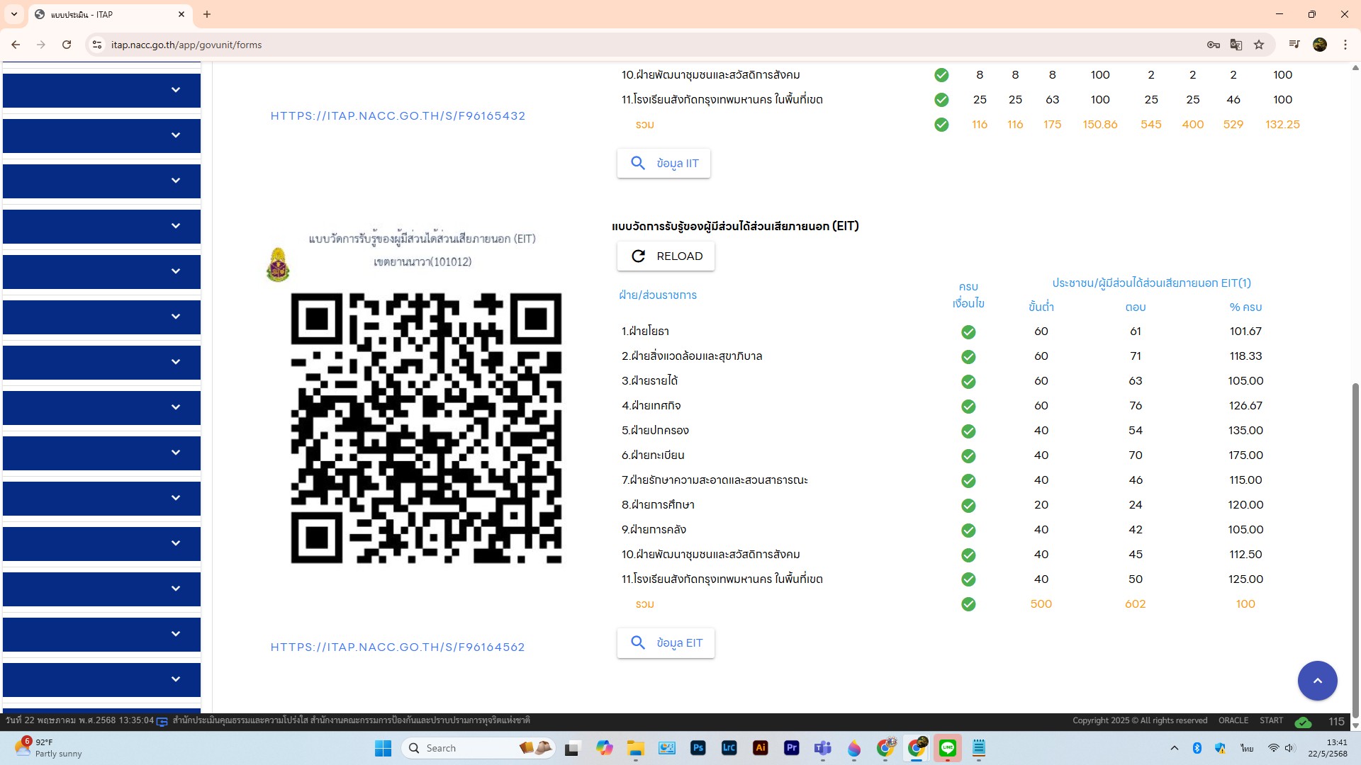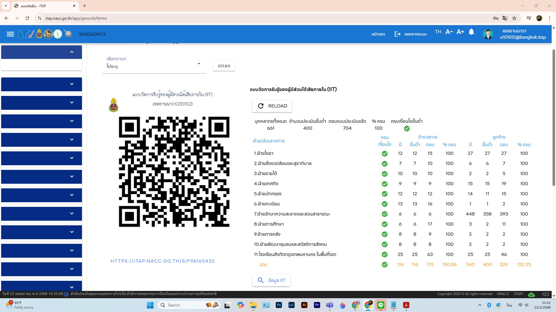 | 5150 |  | 2025-06-20 00:00:00.0000000 | 0.00 | 0.00 |  | (16 มิ.ย. 2568) จัดส่งรายงานการตอบแบบวัดการรับรู้ของผู้มีส่วนได้ส่วนเสียภายใน (IIT) และการตอบแบบวัดการรับรู้ของผู้มีส่วนได้ส่วนเสียภายนอก (EIT) ไปยังสำนักงาน ก.ก. ผ่านไปรษณีย์อิเล็กทรอนิกส์ ita.anticorbma@gmail.com ตามข้อสั่งการในหนังสือสำนักงาน ก.ก. ที่ กท 0307/427 เรื่อง การประเมินคุณธรรมและความโปร่งใสในการดำเนินงานของหน่วยงานภาครัฐ (Integrity and Transparency Assessment: ITA) ในภาพรวมของกรุงเทพมหานคร ประจำปีงบประมาณ พ.ศ. 2568 ลงวันที่ 20 มกราคม 2568 | |