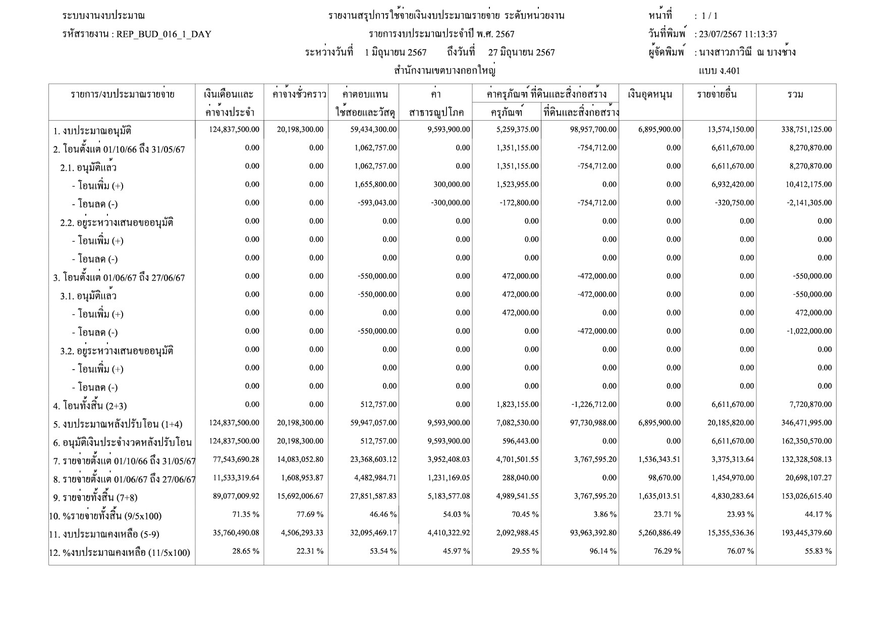 | 1415 | ![]() | 2024-07-23 00:00:00.0000000 | 3.33 | 0.00 | ดำเนินการเบิกจ่ายงบประมาณรายจ่ายประจำปี 2567 รวม 5 หมวดรายจ่าย ได้แก่ หมวดค่าตอบแทน ใช้สอยและวัสดุ หมวดค่าสาธารณูปโภค หมวดค่าครุภัณฑ์ ที่ดินและสิ่งก่อสร้าง หมวดเงินอุดหนุน และหมวดรายจ่ายอื่น ณ วันที่ 23 กรกฎาคม 2567 จำนวน 54,950,612.78 คิดเป็นร้อยละ 27.28% | ||