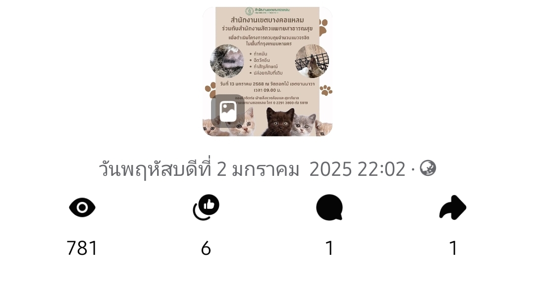 | 5472 |  | 2025-01-23 00:00:00.0000000 | 1,122.00 | 0.00 |  | จำนวนการมีส่วนร่วมกับสื่อประชาสัมพันธ์ที่เผยแพร่(Engagement) ผ่านช่องทาง Facebook สำนักงานเขตบางคอแหลม เมื่อวันที่ 23 มกราคม 2568 = 1122 | |