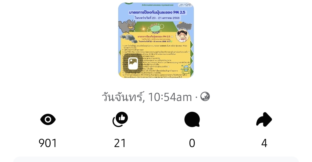 | 5472 |  | 2025-01-23 00:00:00.0000000 | 898.00 | 0.00 |  | จำนวนการมีส่วนร่วมกับสื่อประชาสัมพันธ์ที่เผยแพร่(Engagement) ผ่านช่องทาง Facebook สำนักงานเขตบางคอแหลม เมื่อวันที่ 23 มกราคม 2568 = 989 | |