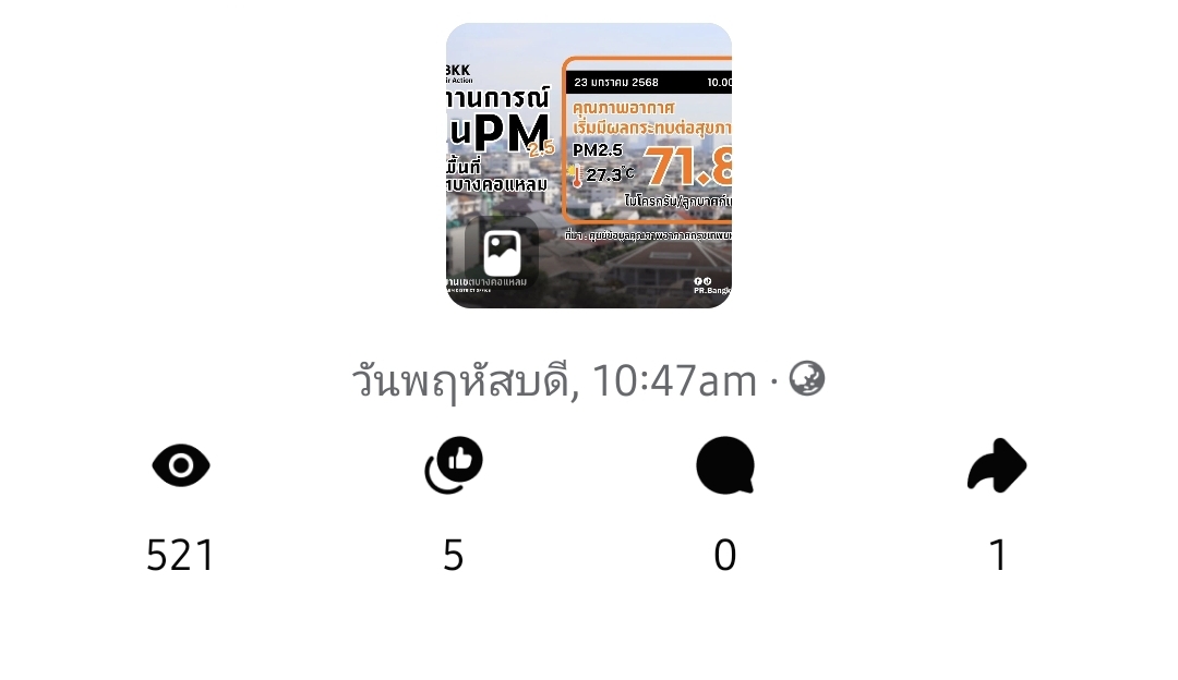 | 5472 |  | 2025-01-23 00:00:00.0000000 | 1,951.00 | 0.00 |  | จำนวนการมีส่วนร่วมกับสื่อประชาสัมพันธ์ที่เผยแพร่(Engagement) ผ่านช่องทาง Facebook สำนักงานเขตบางคอแหลม เมื่อวันที่ 23 มกราคม 2568 = 1951 | |