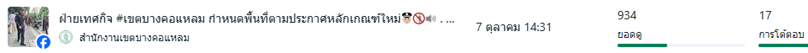 | 5472 |  | 2024-12-09 00:00:00.0000000 | 1,071.00 | 0.00 |  | จำนวนการมีส่วนร่วมกับสื่อประชาสัมพันธ์ที่เผยแพร่(Engagement) ผ่านช่องทาง Facebook สำนักงานเขตบางคอแหลม เมื่อวันที่ 9 ธันวาคม 2567 = 1,071 | |