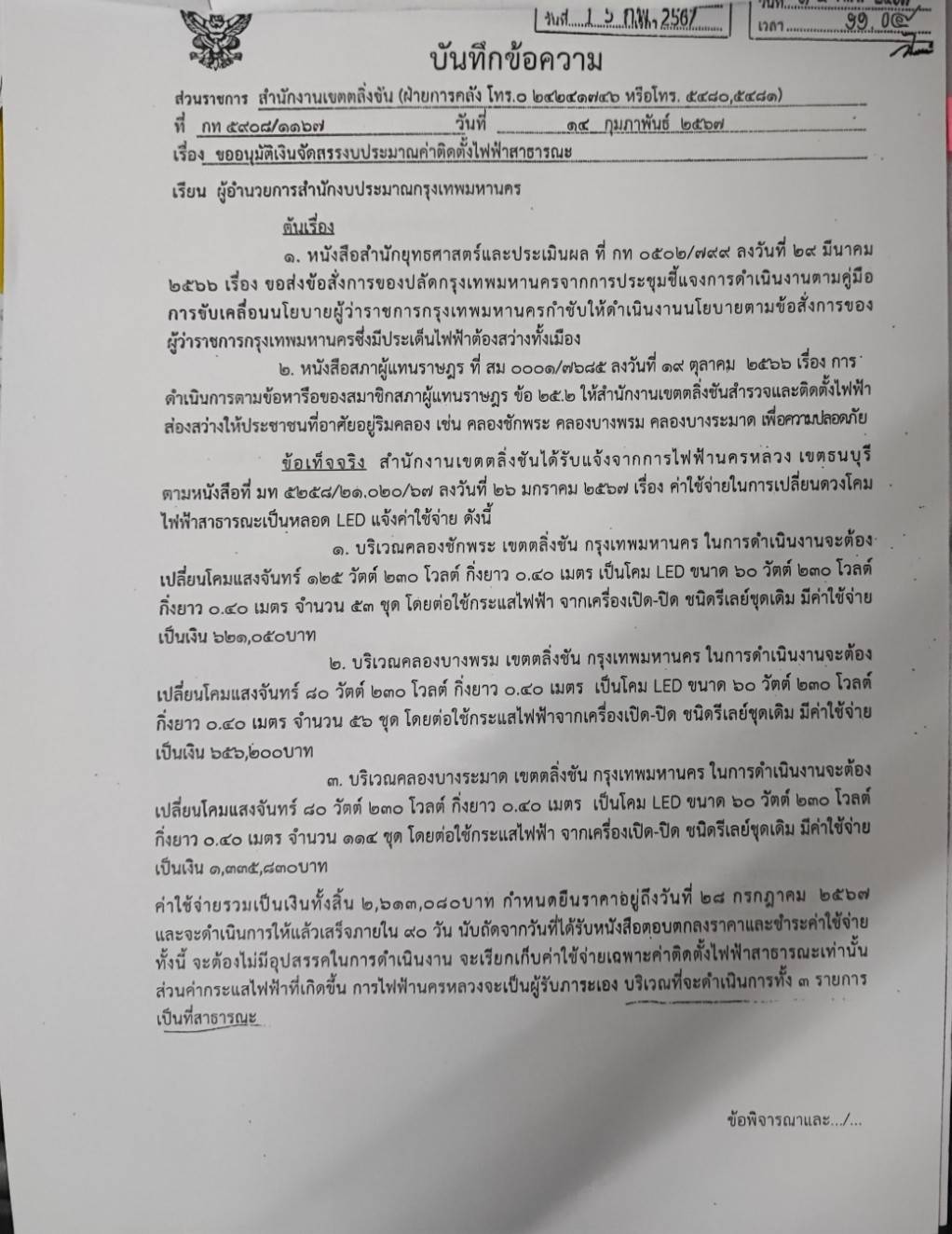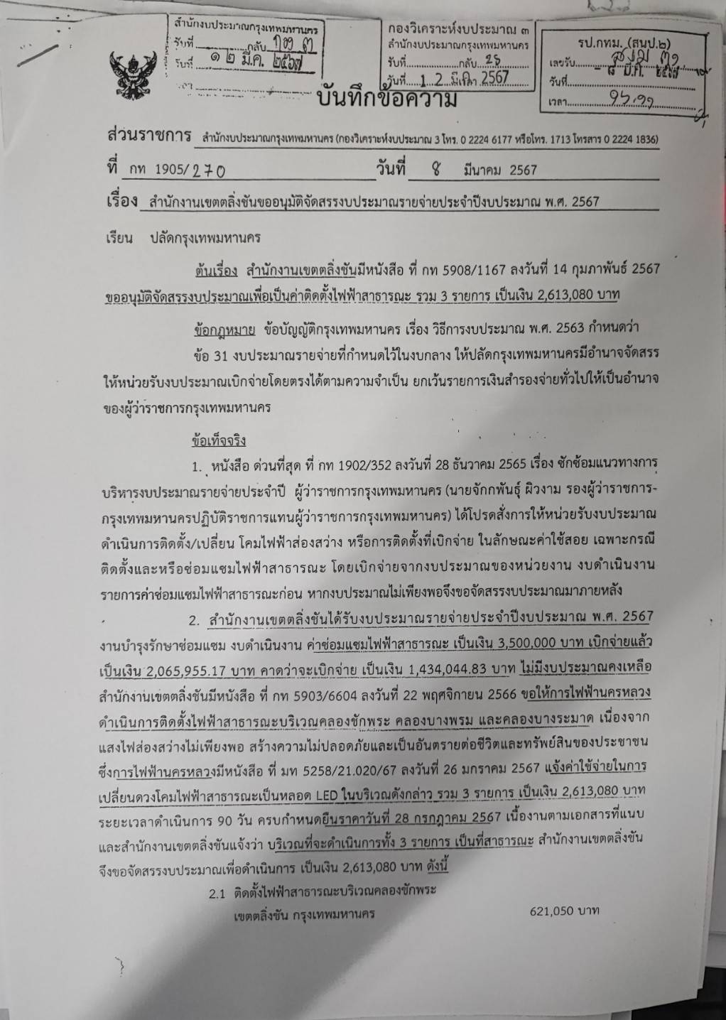 ![]() | 2 | ขออนุมัติเงินจัดสรรงบกลางประจำปีงบประมาณ 2567 ขอจัดสรรโครงการทางเดินชุมชนเลียบคลองสว่างปลอดภัยด้วยแสงไฟฟ้าโซล่าเซลล์ | 5.00 | 2424-01-01 00:00:00.0000000 | 2424-09-30 00:00:00.0000000 |