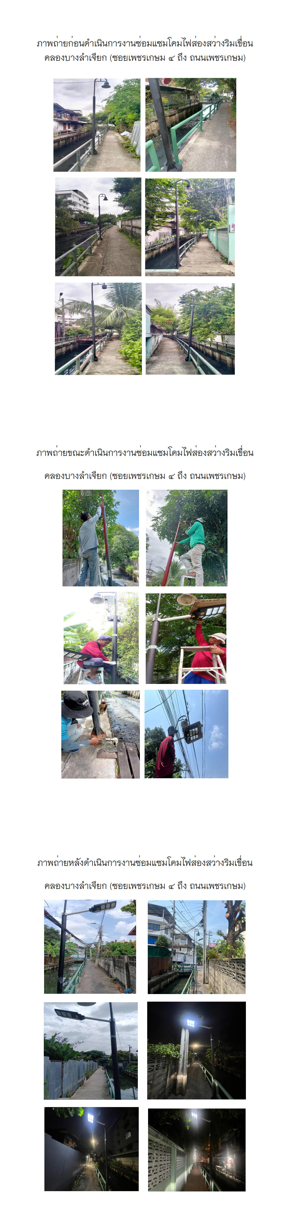 62024-04-22 00:00:00.00000000.000.00ดำเนินการสำรวจไฟฟ้าส่องสว่างตามแนวคลองในพื้นที่เขตเป็นประจำทุกสัปดาห์