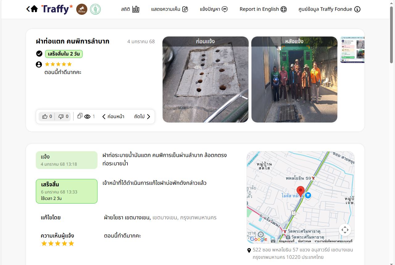 ![]() | 12 | รายงานผลการดำเนินการปรับปรุงซ่อมแซมทางเท้าและฝาท่อระบายน้ำ จากเรื่องร้องเรียนที่ได้รับในระบบ Traffy Fondue ให้แล้วเสร็จภายใน 7 วัน หลังวันที่ได้รับเรื่อง เฉพาะรายการที่ไม่ใช้งบประมาณดำเนินการ ประจำเดือนกันยายน 2568 | 9.00 | 2025-09-01 00:00:00.0000000 | 2025-09-30 00:00:00.0000000 |