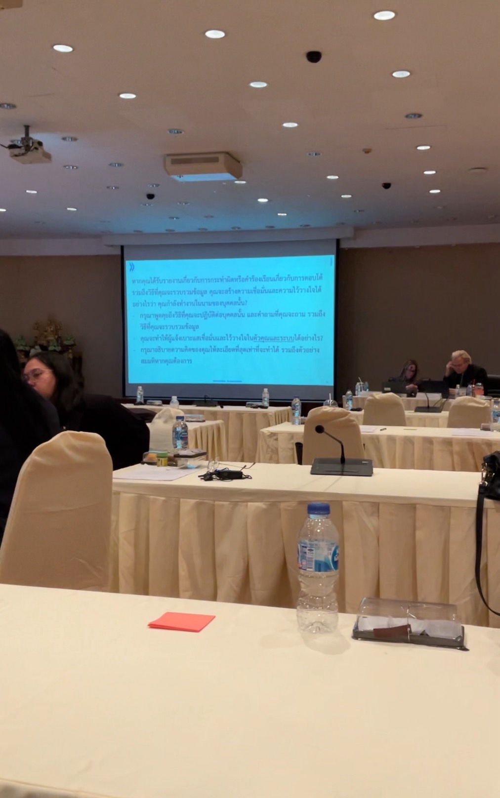 | 5146 | ![]() | 2025-01-21 00:00:00.0000000 | 0.00 | 0.00 | เมื่อวันที่ 15 และ 17 มกราคม 2568 นางสาวเต็มศิริ เนตรทัศน์ และ นายพิศนุ อินทร์ชัย ผู้แทนศูนย์ปฏิบัติการต่อต้านการทุจริตกรุงเทพมหานคร (ศปท.กทม.) ได้เข้าร่วมกิจกรรมการประชุมเชิงปฏิบัติการเพื่อพัฒนาแนวทางต้านและลดการทุจริตด้วยกลไกสหยุทธ์ กรณีพื้นที่เสี่ยงต่อการทุจริตกรุงเทพมหานคร ภายใต้โครงการ STRONG: Together against Corruption – TaC ในปีงบประมาณ 2568 ณ โรงแรมนูโว ซิตี้ โดยได้รับเกียรติให้เป็นวิทยากรบรรยายการป้องกันและต่อต้านการทุจริตของกรุงเทพมหานคร (ความก้าวหน้า 10%) | ||