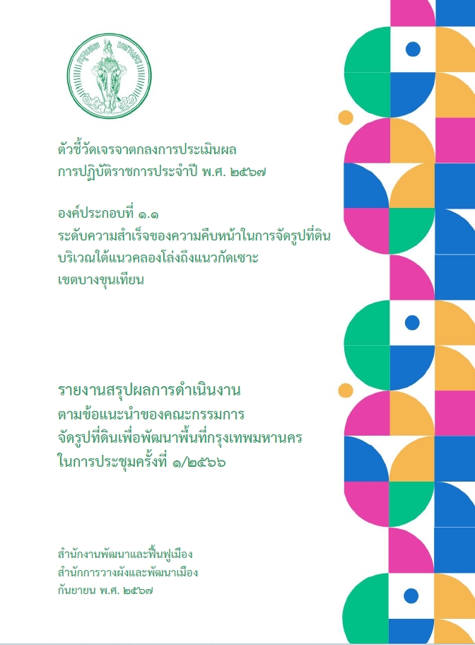 ![]() | 2 | ดำเนินการตามข้อแนะนำของคณะกรรมการจัดรูปที่ดินเพื่อพัฒนาพื้นที่กรุงเทพมหานคร ในการประชุมครั้งที่ 1/2566 | 12.00 | 2023-11-01 00:00:00.0000000 | 2023-11-30 00:00:00.0000000 |
