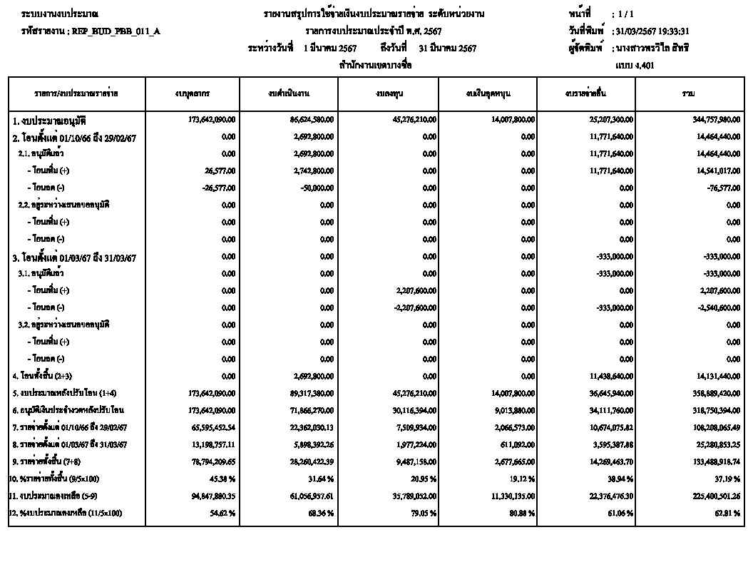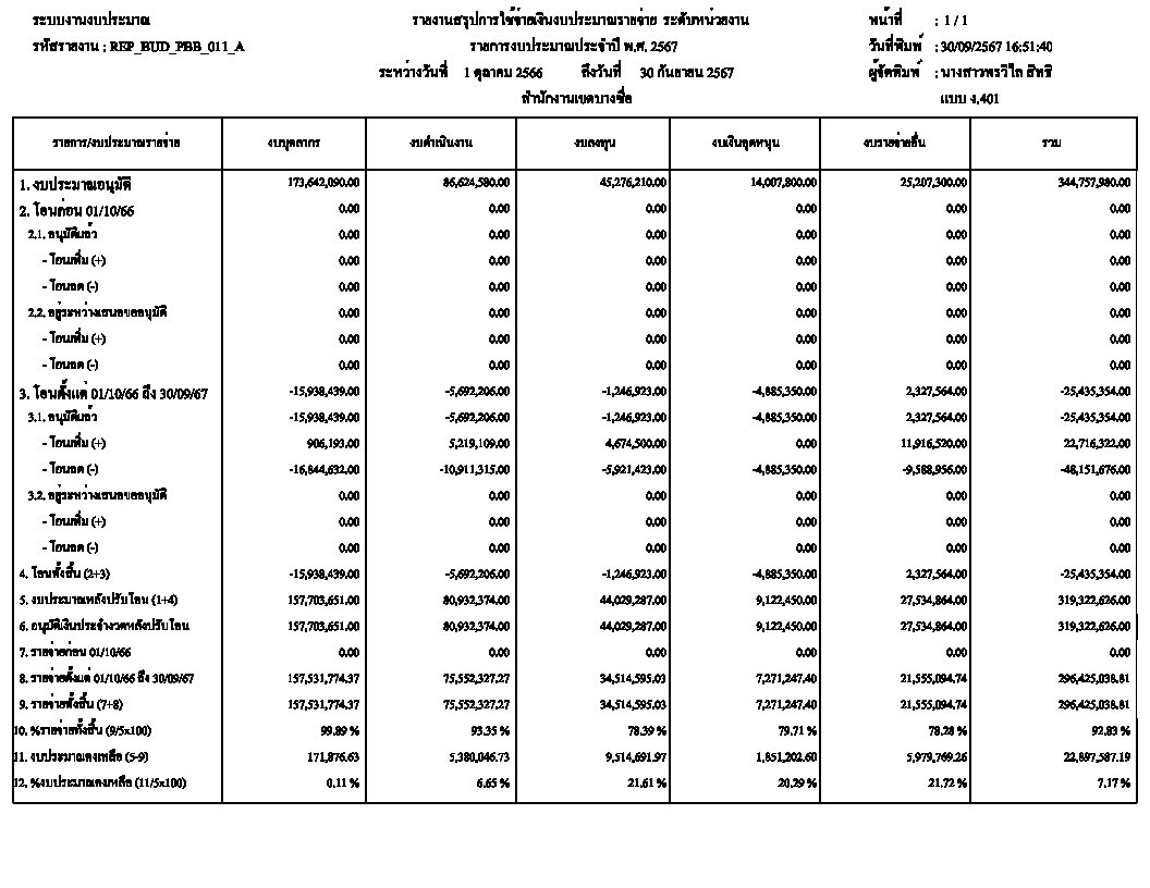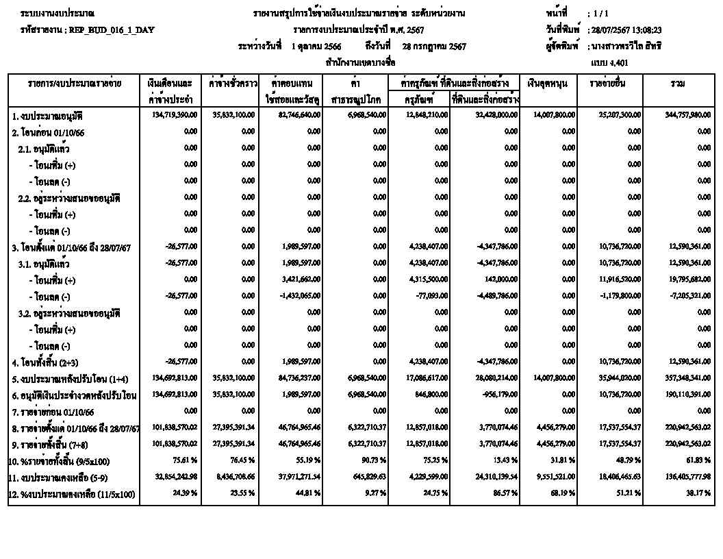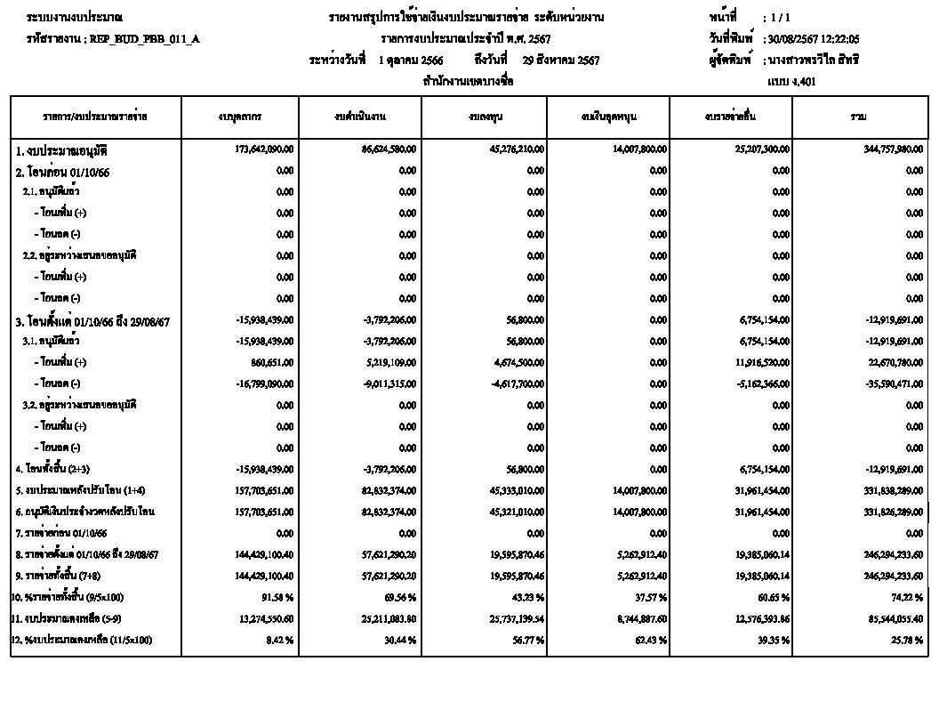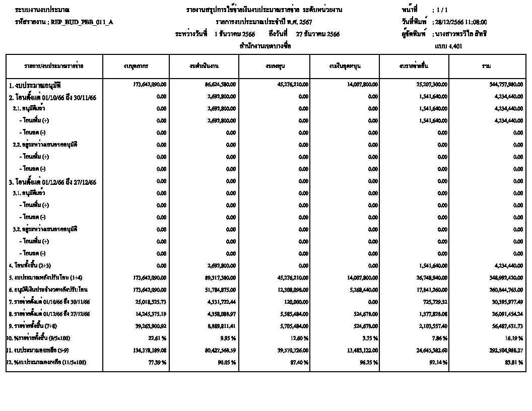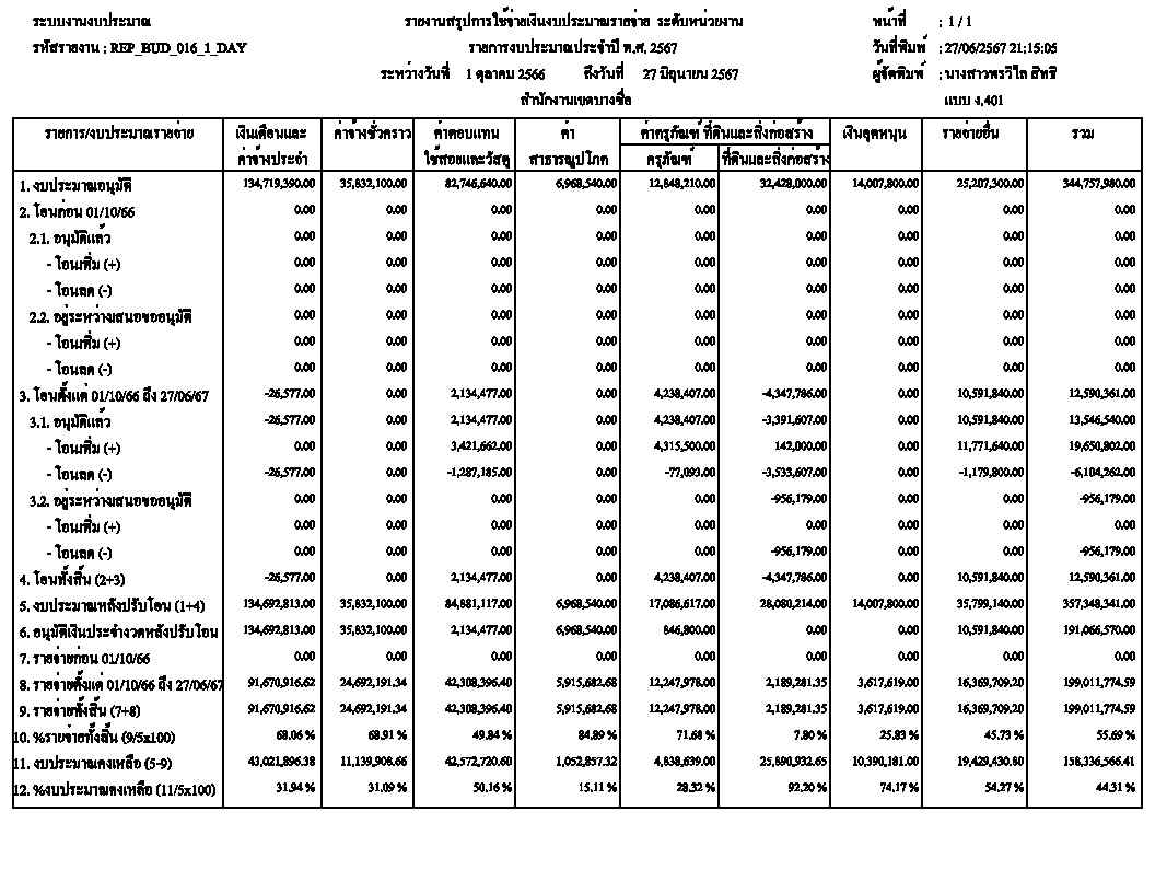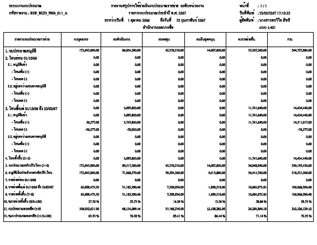 ![]() | - | การเบิกจ่ายงบประมาณในภาพรวม | 0.00 | 100.00 | สำนักงานเขตบางซื่อ | ฝ่ายการคลัง |