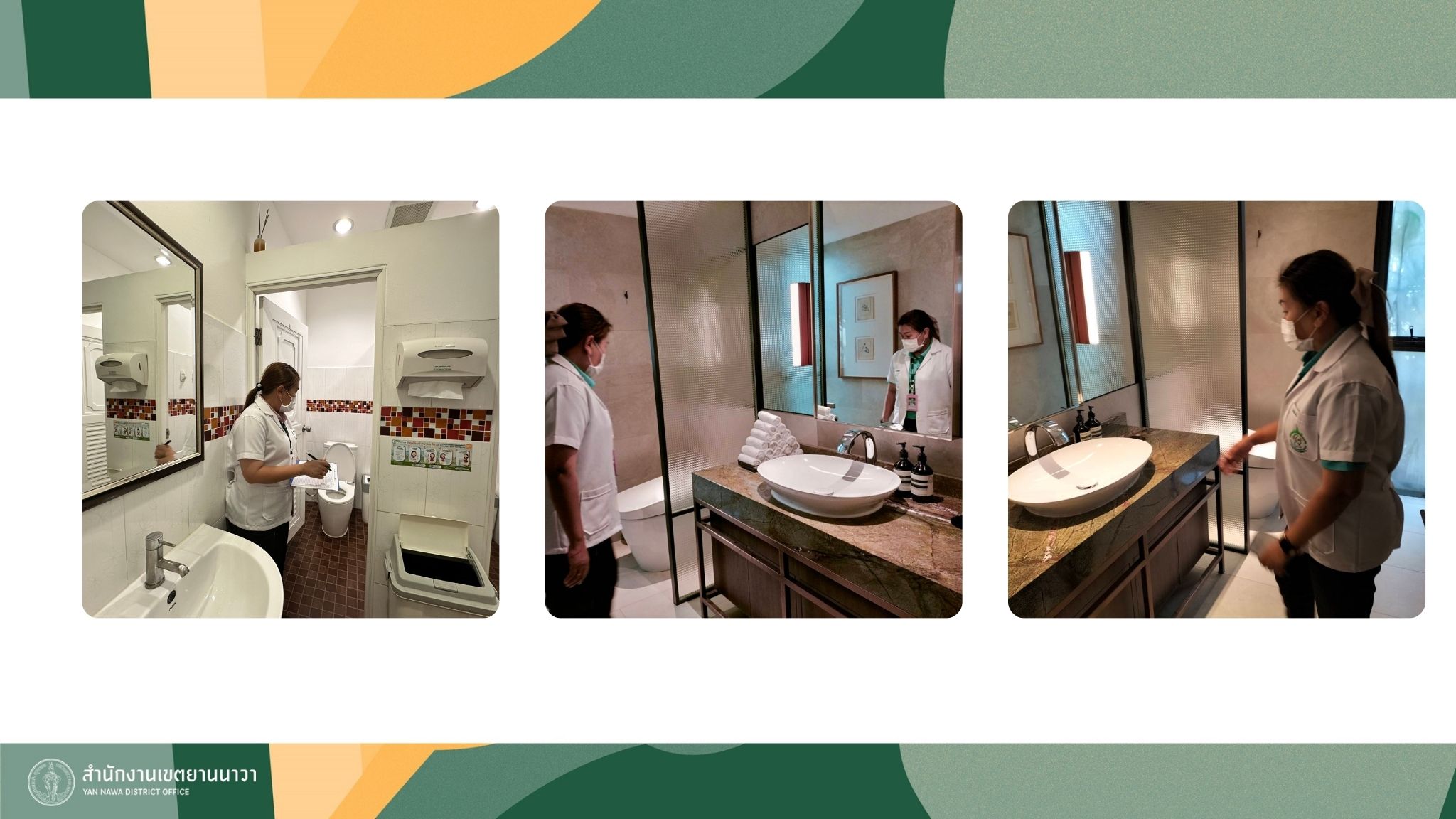 | 5389 | ![]() | 2025-02-24 00:00:00.0000000 | 25.92 | 0.00 | จำนวนห้องน้ำ 12 กลุ่มเป้าหมายทั้งหมดในพื้นที่เขตยานนาวา จำนวน 81 แห่ง (ข้อมูล เดือน ก.พ. 2568) การตรวจระยะที่ 2 (ก.พ. - มี.ค. 68) จำนวน 4 กลุ่มเป้าหมาย ได้แก่ สวนสาธารณะ สถานที่ราชการ สถานศึกษา และสถานีขนส่ง ทั้งหมดจำนวน 22 แห่ง ดำเนินการตรวจห้องน้ำ จำนวน 22 แห่ง ผ่าน HAS จำนวน 21 แห่ง รวมการตรวจระยะที่ 1 และระยะที่ 2 จำนวน 60 แห่ง ผ่าน HAS จำนวน 58 แห่ง คิดเป็นร้อยละ 71.6 ของห้องน้ำทั้งหมด 81 แห่ง | ||