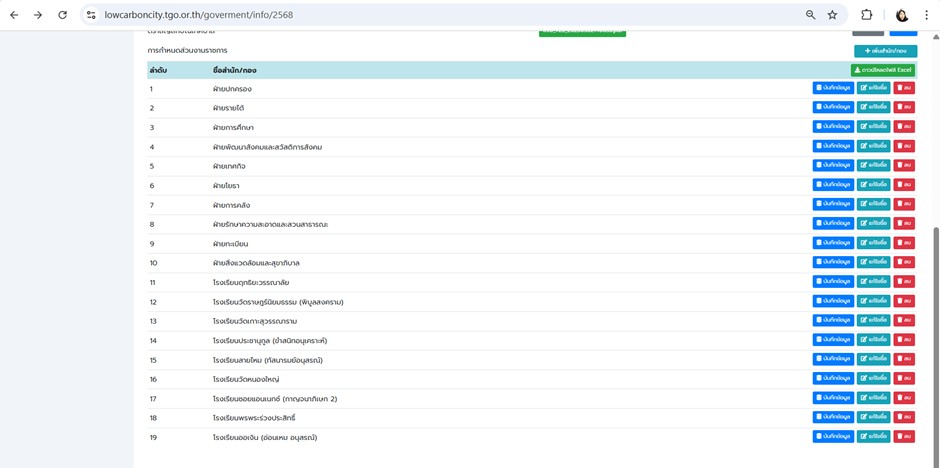| 5180 | ![]() | 2025-03-24 00:00:00.0000000 | 0.00 | 0.00 | อยู่ระหว่างรวบรวมและนำเข้าข้อมูลกิจกรรมในระบบรายงานข้อมูลก๊าซเรือนกระจกขององค์กรปกครองส่วนท้องถิ่นและเมือง กำหนดแล้วเสร็จภายในวันที่ 11 เมษายน 2568 | ||