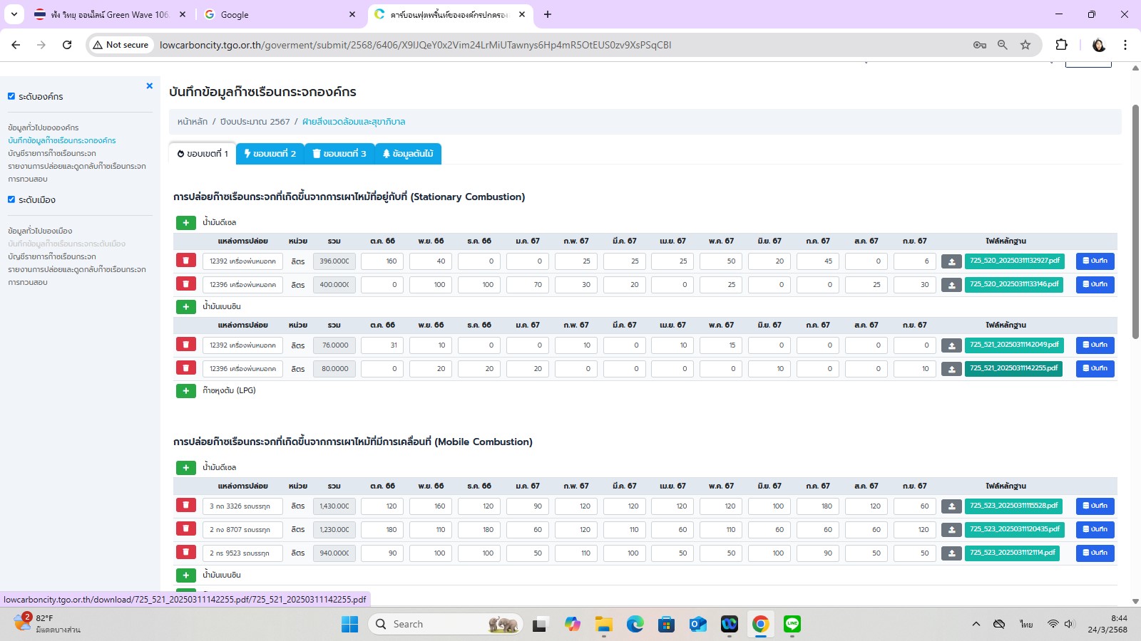 | 5180 | ![]() | 2025-04-14 00:00:00.0000000 | 1.00 | 0.00 | นำเข้าข้อมูลกิจกรรมในระบบรายงานข้อมูลก๊าซเรือนกระจกขององค์กรปกครองส่วนท้องถิ่นและเมืองแล้วเสร็จ วันที่ 8 เมษายน 2568 | ||