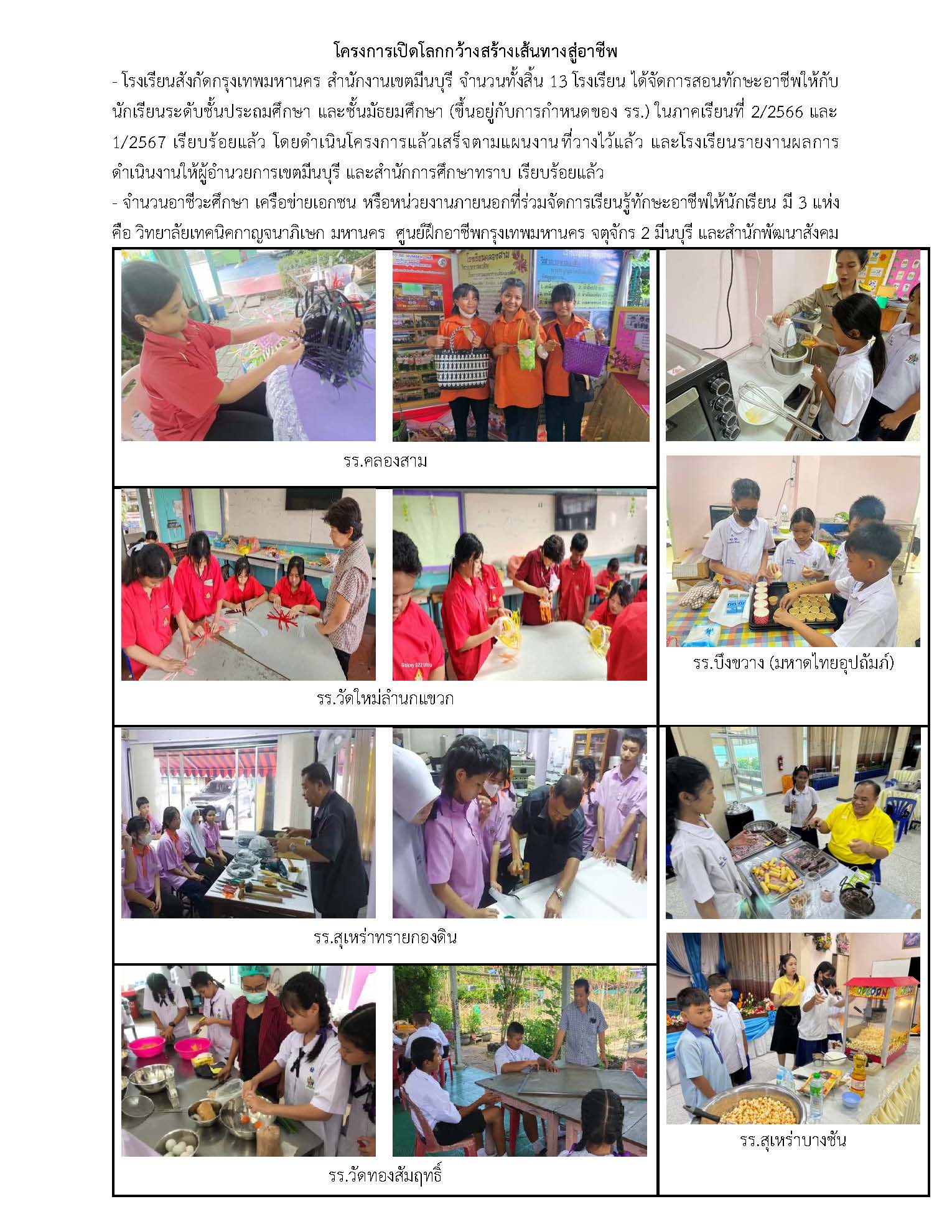 11522024-09-26 00:00:00.000000013.000.00โรงเรียนสังกัดกรุงเทพมหานคร สำนักงานเขตมีนบุรี จำนวนทั้งสิ้น 13 โรงเรียน ได้จัดการสอนทักษะอาชีพให้กับนักเรียนระดับชั้นประถมศึกษา และชั้นมัธยมศึกษา (ขึ้นอยู่กับการกำหนดของ รร.) ในภาคเรียนที่ 2/2566 และ 1/2567 เรียบร้อยแล้ว โดยดำเนินโครงการแล้วเสร็จตามแผนงานที่วางไว้แล้ว และโรงเรียนรายงานผลการดำเนินงานให้ผู้อำนวยการเขตมีนบุรี และสำนักการศึกษาทราบ เรียบร้อยแล้ว