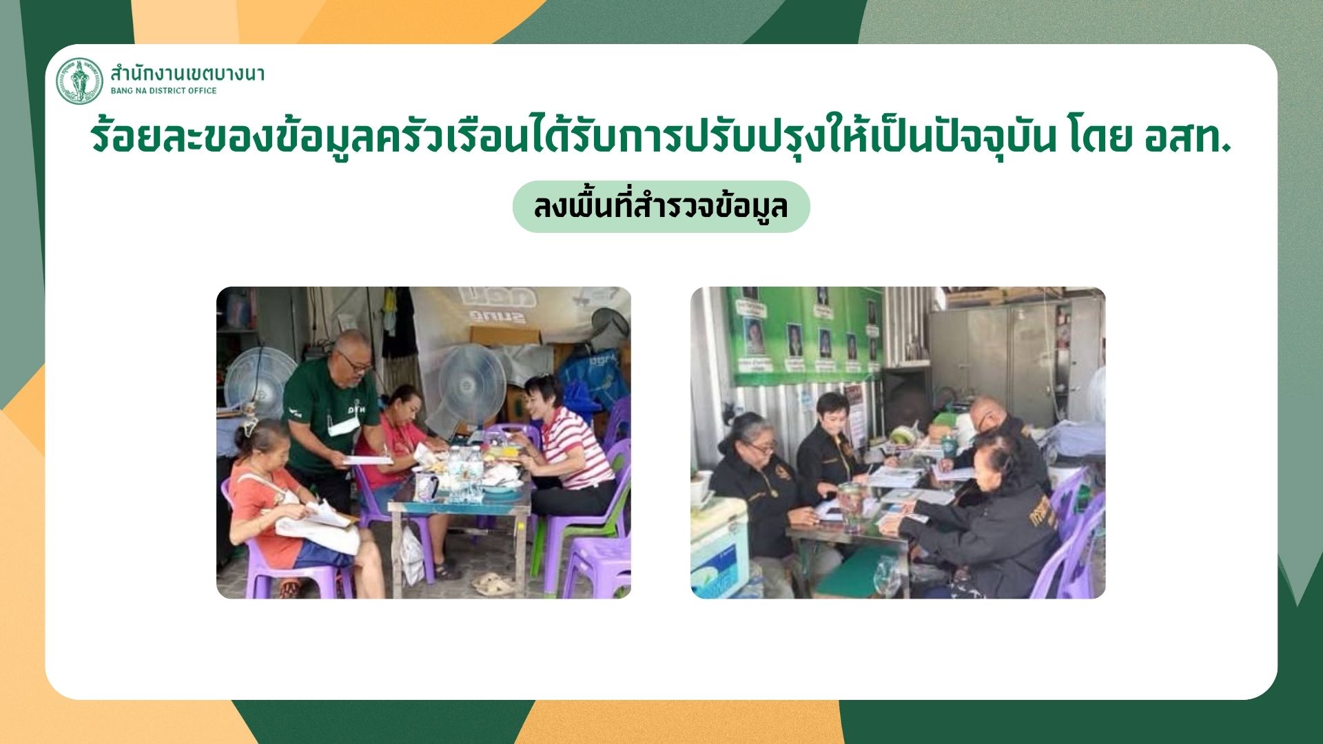![]() | - | ปรับปรุงข้อมูลครัวเรือนให้เป็นปัจจจุบัน โดย อสท. | 0.00 | 100.00 | สำนักงานเขตบางนา | ฝ่ายพัฒนาชุมชนและสวัสดิการสังคม |