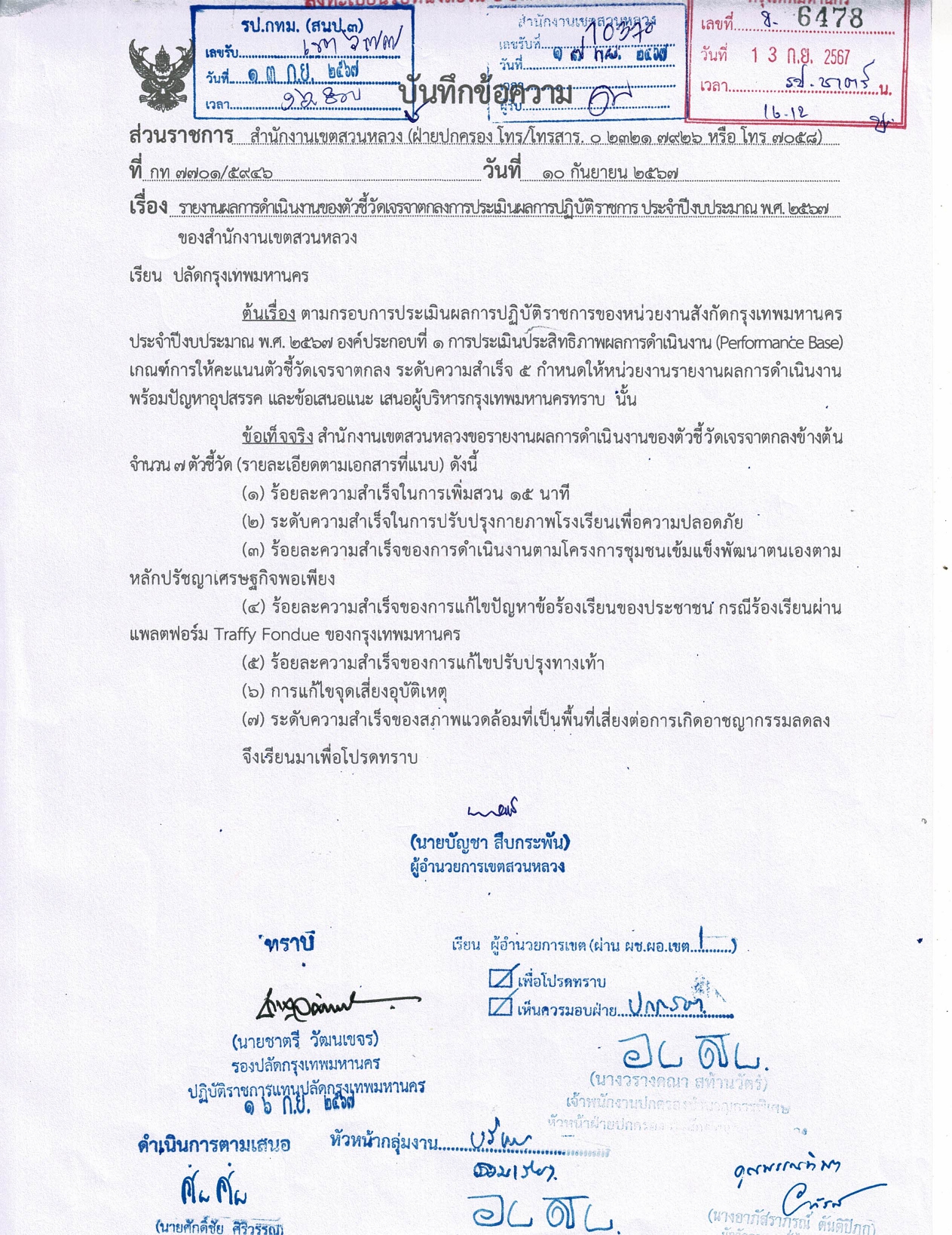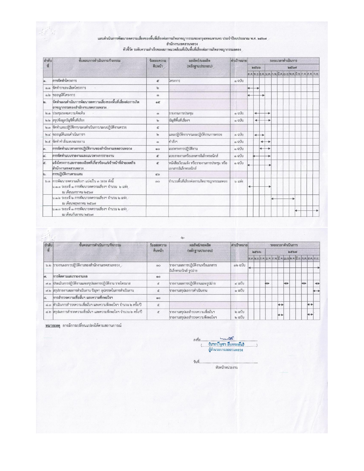 | 12 | ![]() | 2024-09-23 00:00:00.0000000 | 0.00 | 0.00 | - รายงานผลการดำเนินงานการแก้ไขปรับปรุงทางเท้า พร้อมปัญหาอุปสรรค และข้อเสนอแนะ เสนอผู้บริหารกรุงเทพมหานครทราบ ตามหนังสือที่ กท 7701/5946 ลงวันที่ 10 กันยายน 2567 - จัดทำรายงานผลการตรวจตามแบบรายงานผลการดำเนินการแก้ไขจุดเสี่ยงภัย (จุดเสี่ยงต่อการเกิดอาชญากรรม) เป็นเอกสารส่งสำนักเทศกิจ ประจำเดือนสิงหาคม 2567 ตามหนังสือ ที่ กท 7709/5839 ลงวันที่ 5 กันยายน 2567 | ||