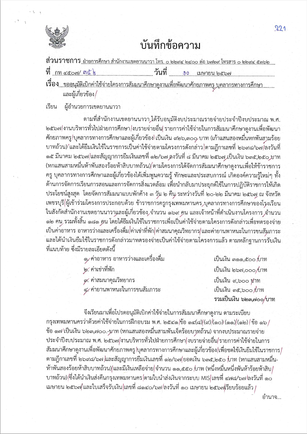 | 99 |  | 2024-09-20 00:00:00.0000000 | 20.00 | 0.00 |  | เบิกจ่ายงบประมาณตามโครงการ | |