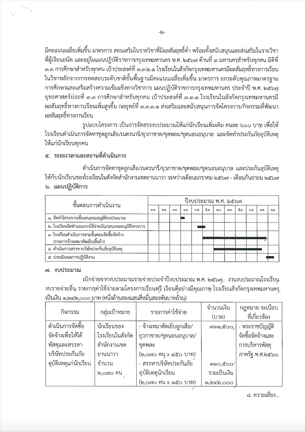 ข้อมูลโครงการ :: ค่าใช้จ่ายตามโครงการเรียนฟรี เรียนดีอย่างมีคุณภาพโรงเรียนสังกัดกรุงเทพมหานคร