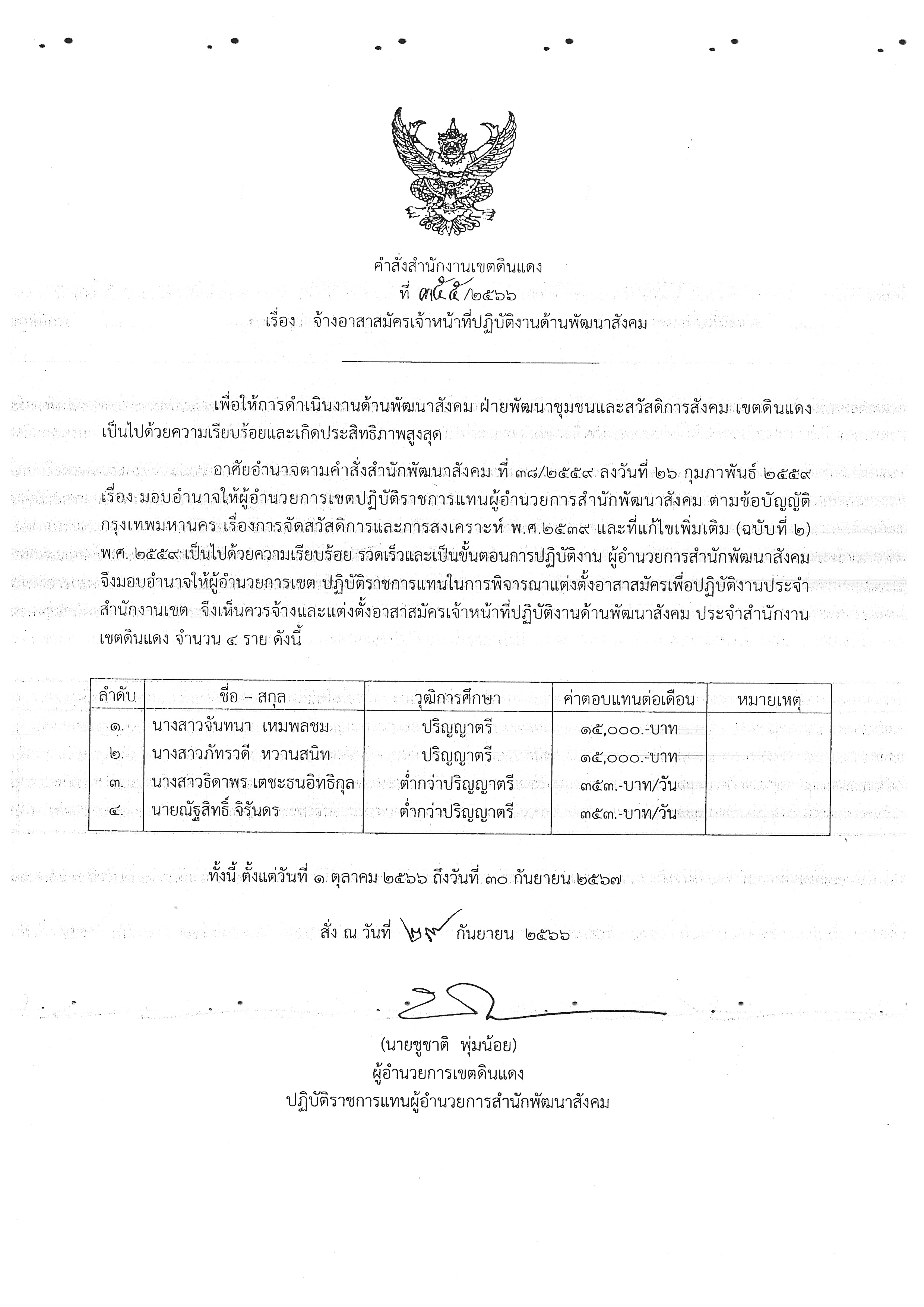 992024-09-13 00:00:00.000000040.000.00คำสั่งสำนักงานเขตดินแดงที่ 355/2566 ลงวันที่ 29 กันยายน 2566 เรื่อง จ้างอาสาสมัครเจ้าหน้าที่ปฏิบัติงานด้านพัฒนาสังคม จำนวน 4 ราย ตั้งแต่วันที่ 1 ตุลาคม 2566 ถึงวันที่ 30 กันยายน 2567