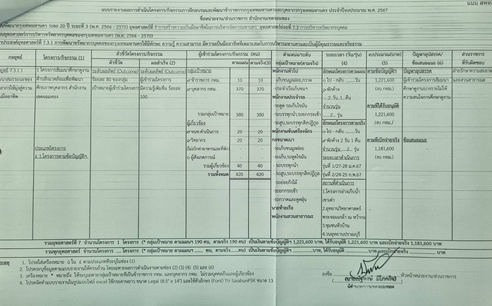 โครงการสัมมนาศึกษาดูงานด้านสิ่งแวดล้อมเพื่อพัฒนาศักยภาพบุคลากร สำนักงานเขตจอมทอง1,221,600.00100.00สำนักงานเขตจอมทองฝ่ายรักษาความสะอาดและสวนสาธารณะ