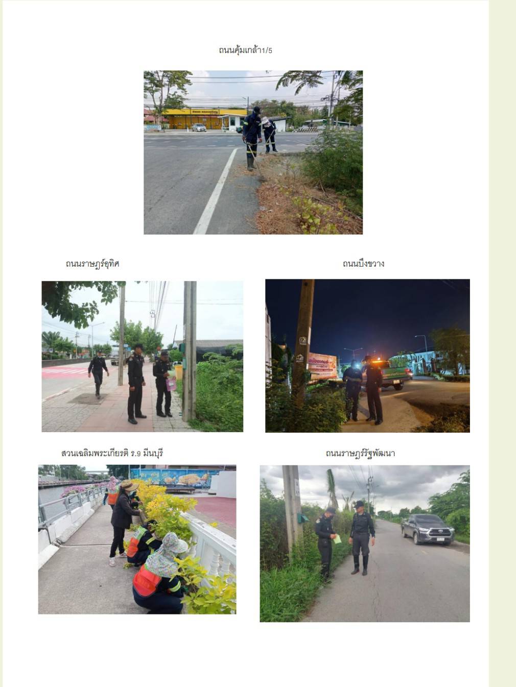 | 12 | ![]() | 2024-08-23 00:00:00.0000000 | 0.00 | 0.00 | ฝ่ายเทศกิจได้จัดเจ้าหน้าที่เทศกิจออกตรวจตราพื้นที่จุดเสี่ยงอาชญากรรม 5 จุด คือ บริเวณสวนเฉลิมพระเกียรติ ร.9 มีนบุรี , ทางเดินเลียบคลองบึงขวาง , ซอยราษฎร์พัฒนา , ปากซอยราษฎร์อุทิศ 7/1 และซอยคุ้มเกล้า 1/5 โดยออกตรวจตราวันละ 3 ครั้ง/วัน/จุด โดยได้ดำเนินการออกตรวจไฟฟ้าส่องสว่าง ตรวจตรากล้อง CCTV และความสะอาดพื้นที่บริเวณจุดเสี่ยง ผลการดำเนินการสภาพกล้อง CCTV และไฟฟ้าส่องสว่างมีสภาพพร้อมใช้งาน และพื้นที่มีความสะอาด ไม่มีเหตุอาชญากรรม | ||