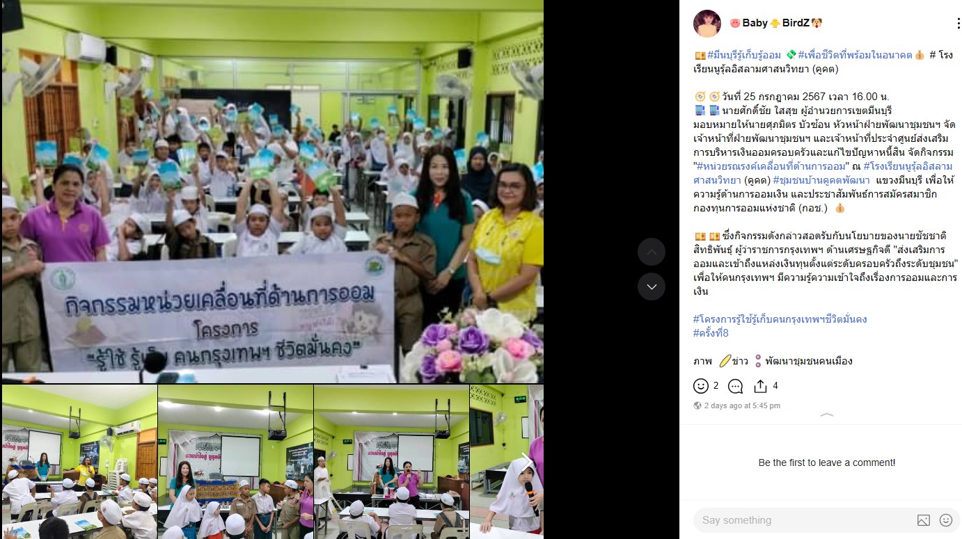 ![]() | ค่าใช้จ่ายโครงการรู้ใช้ รู้เก็บ คนกรุงเทพฯ ชีวิตมั่นคง | 20,000.00 | 100.00 | สำนักงานเขตมีนบุรี | ฝ่ายพัฒนาชุมชนและสวัสดิการสังคม |