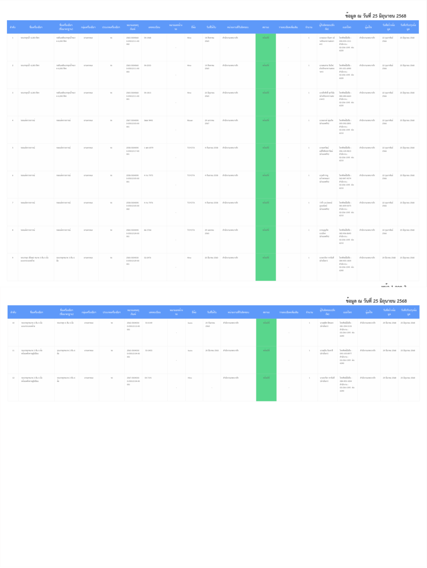 ![]() | - | (5100) หน่วยงานที่มีการตรวจสอบสภาพยานพาหนะ และรายงานสถานะรายเดือน ผ่านระบบระบบฐานข้อมูลสารสนเทศภูมิศาสตร์ (GIS) และระบบสารสนเทศการบริหาร (MIS) เพื่อการป้องกันและบรรเทาสาธารณภัย | หน่วยงาน | 1.00 | 1.00 | 100.00 |