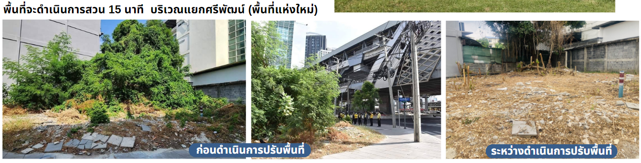 32024-05-31 00:00:00.00000000.000.00อยู่ระหว่างดำเนินการพัฒนาสวน 15 นาที แห่งที่ 3 คือ สวนบริเวณพื้นที่แยกศรีพัฒน์ (เนื่องจากพื้นที่สวนภายในห้างสรรพสินค้าเทสโก้ โลตัส พัฒนาการ มีการขอพื้นที่คืน)